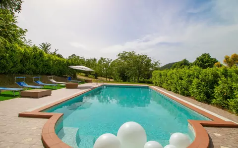 This historical country house "Il Giardino Dei Semplici" is a detached 1700s villa, renovated in 2000, surrounded by fields in the hamlet of Montelovesco, 15 km from Gubbio, Italy. It offers a shared 1 ha park and a private swimming pool (6 x 12 m, depth 160 cm) with salt water, available seasonally from June 1st to September 30th. Garden furniture and a barbecue are provided. The property has Internet Wifi and Parking amenities. A vacation rental here allows you to enjoy the scenic and secluded location atop a hill.