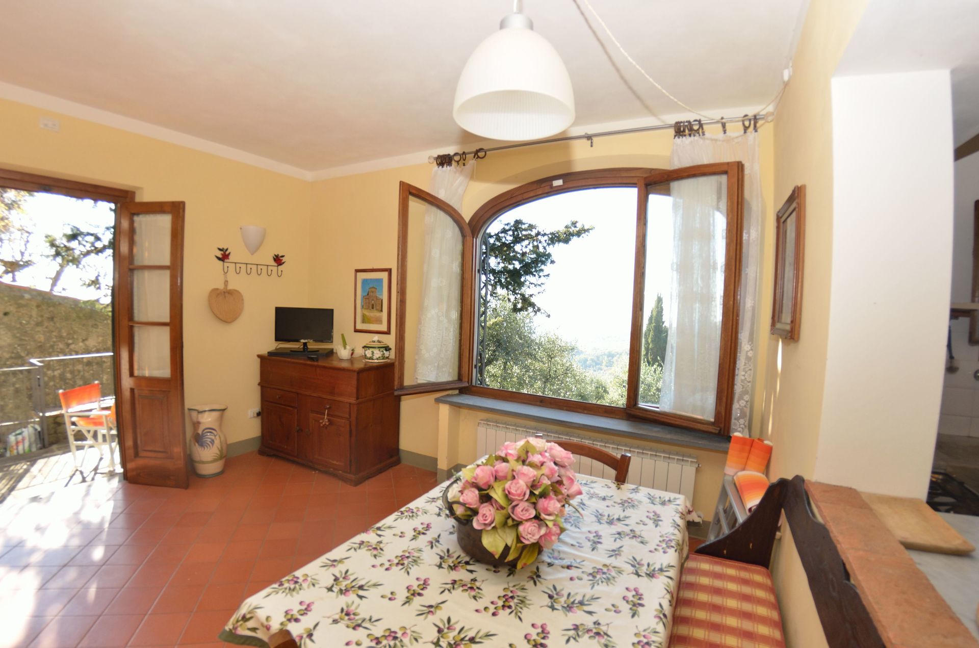 Upon arrival at La Cipressa you’ll find a nice clean well-maintained property with views of the hills perfect for a peaceful vacation in Tuscany. Regardless of how you spend your days - shopping, sightseeing, visiting museums or just driving in the countryside, when you arrive home you can unwind with your family and friends for a perfect ending to another day in Tuscany. There is a kitchen including stove and refrigerator, as well as, plenty of tableware and cutlery for up to four people. If you prefer to dine 'al fresco', there is a fully furnished terrace where you can enjoy the weather while dining outdoors.