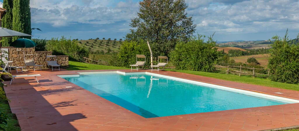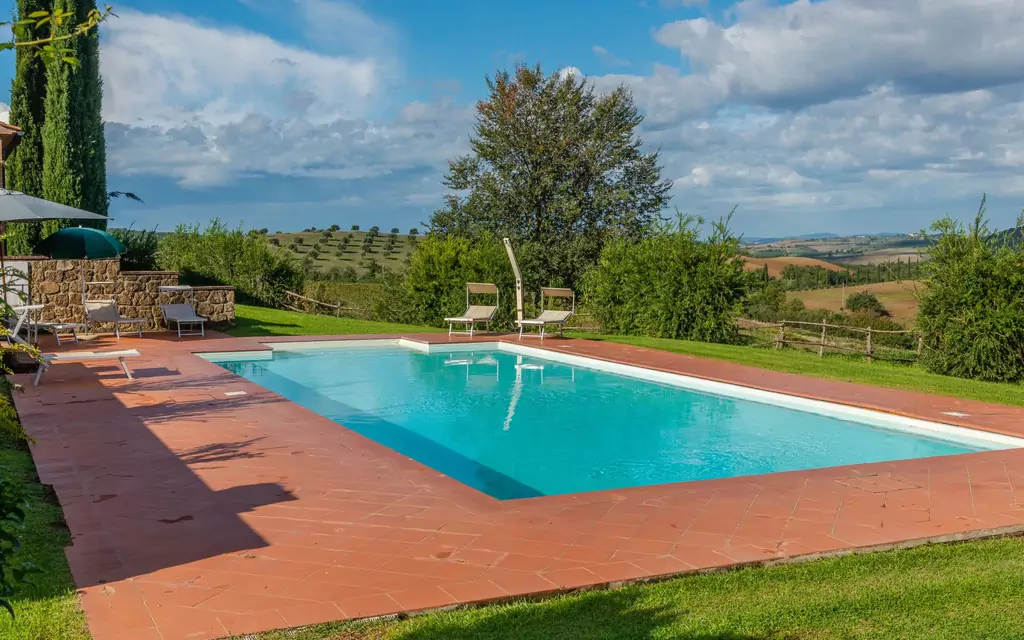 The outdoor spaces of this property are as generous as they are beautiful, inviting guests to make the most of the Tuscan countryside at every hour of the day. The private grounds extend across 1,500 m2 and include a well-maintained garden, which, while not fenced, offers a natural and open sense of space framed by the surrounding landscape. The centrepiece of the exterior is the impressive swimming pool, measuring 14 x 7 m with a depth ranging from 90 to 140 cm and equipped with an internal staircase for easy access. The pool is available seasonally from 30 May to 1 October. A spacious terrace adjoins the outdoor area and is furnished with garden furniture, providing an ideal setting for al fresco dining and leisurely afternoons in the sun. A barbecue is also available, perfect for preparing meals outdoors while enjoying the panoramic views from this hilltop position.