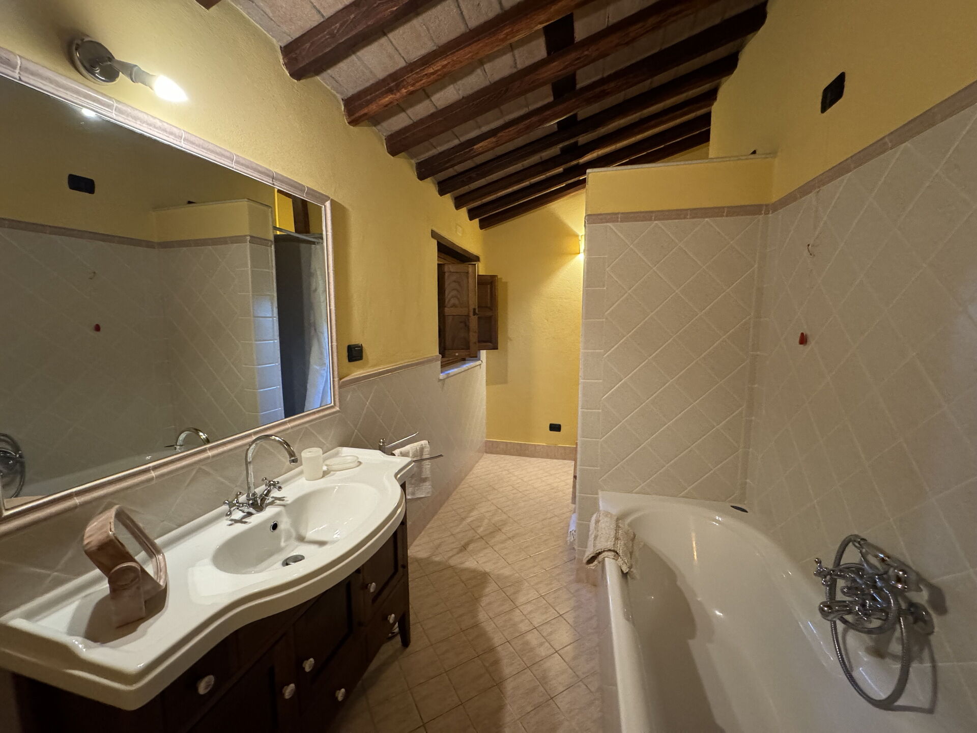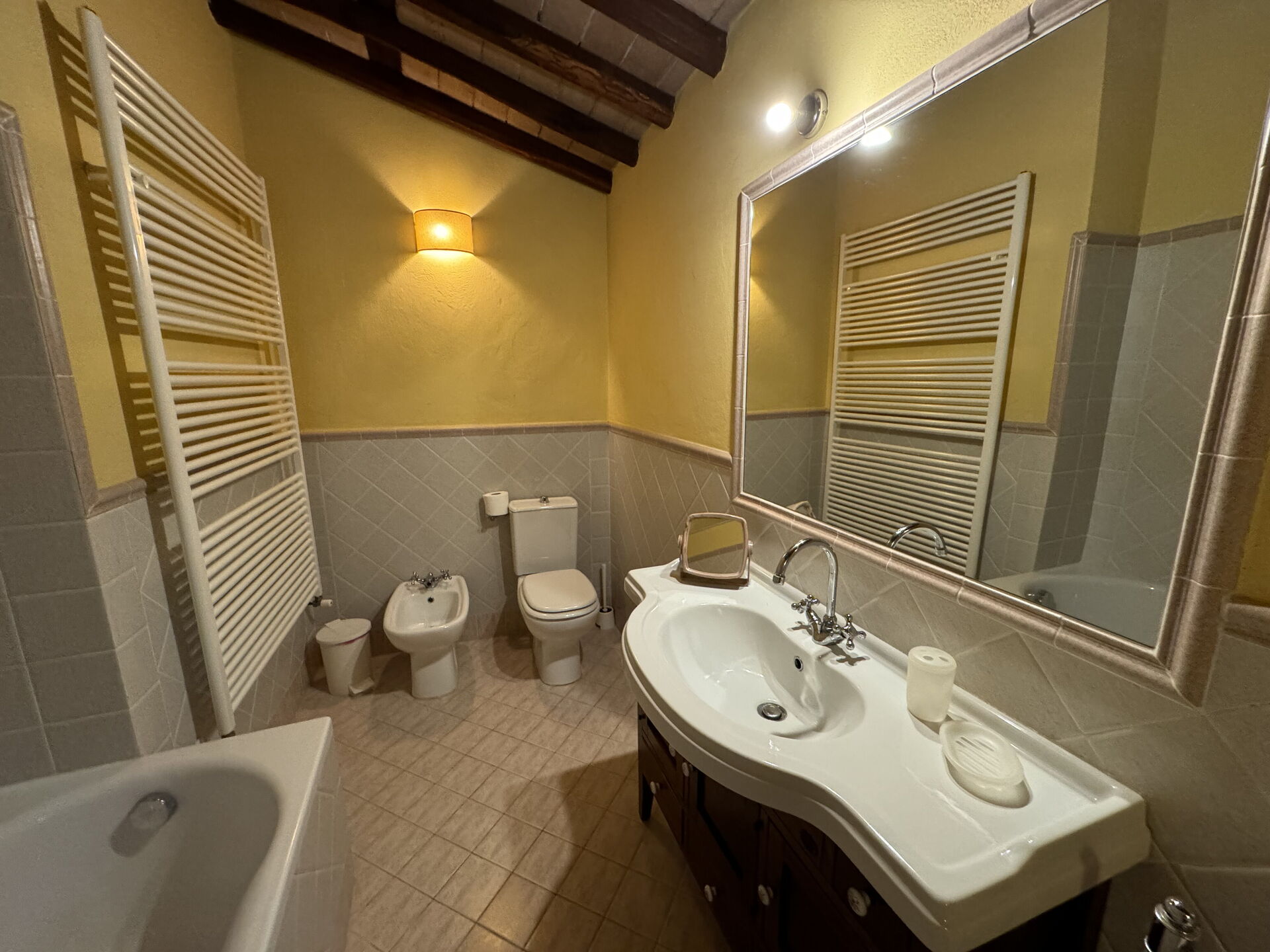 Bathroom: basin, toilet, bidet, bathtub, shower.