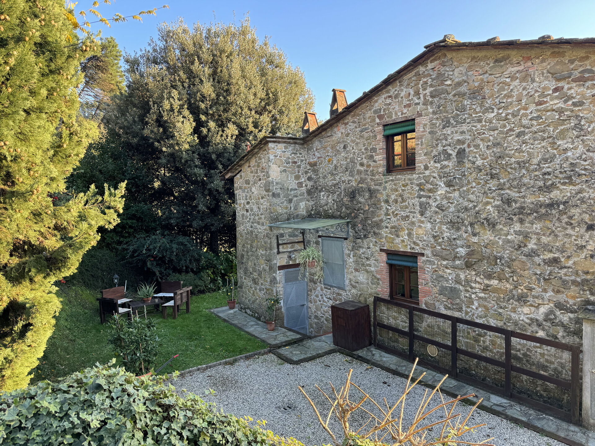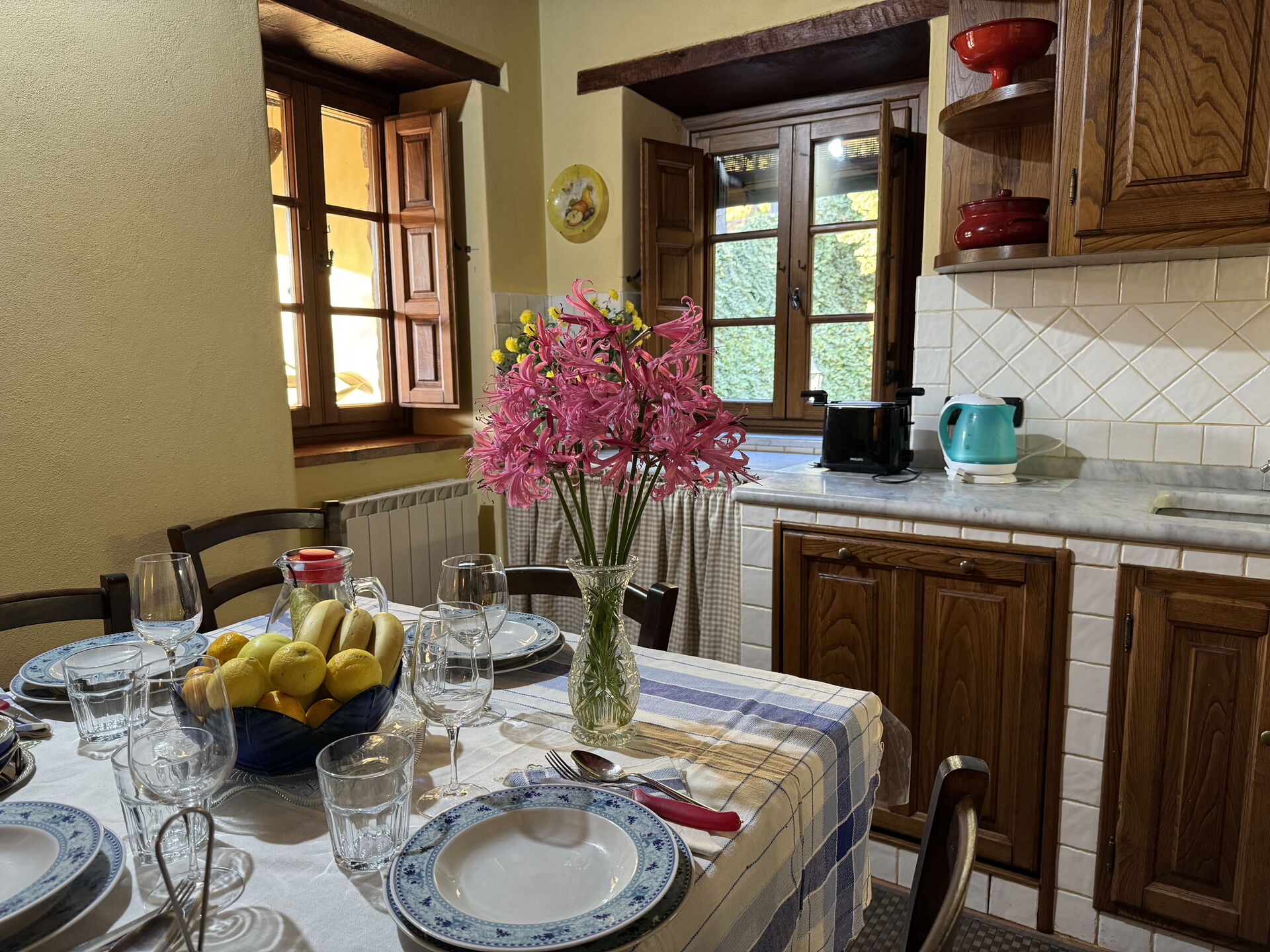 When you arrive at Batticapo di Ilaria you’ll find a beautiful clean well-maintained property with views of the hills ideal for a peaceful vacation in Tuscany. Regardless of how you spend your days - visiting museums, sightseeing, shopping or just driving in the countryside, when you arrive home you can unwind with your family and friends at the pool for a perfect ending to another day in Tuscany. Sharing a meal with friends and family is a big part of the Tuscan culture. Take advantage of the kitchen to prepare meals using local produce while on your holiday. The kitchen includes coffee machine, stove and refrigerator, as well as, plenty of tableware and cutlery for up to six people. Dine 'al fresco' like a real Tuscan, the fully furnished garden is the perfect setting to enjoy food, family and the lovely Tuscan weather.