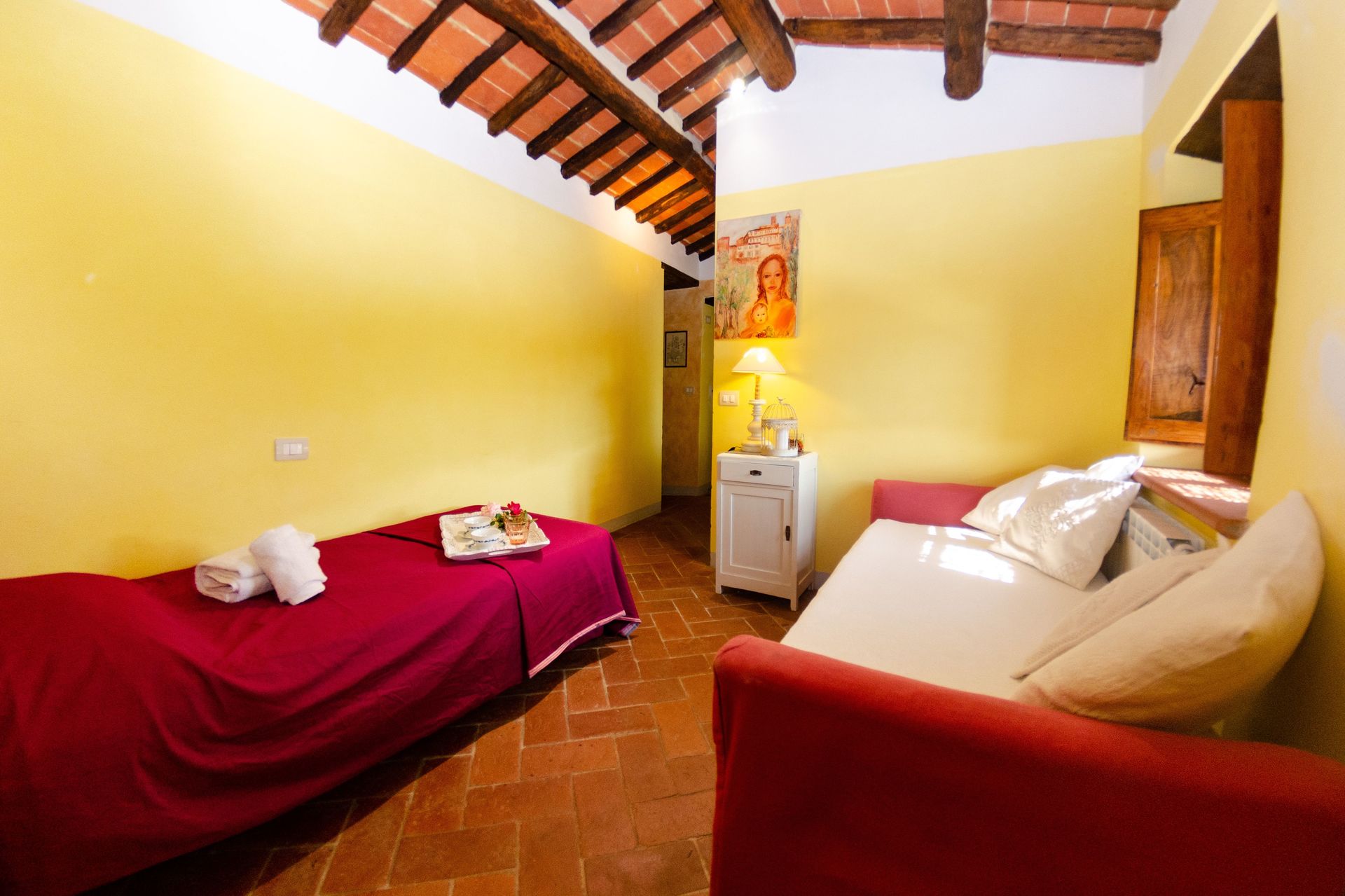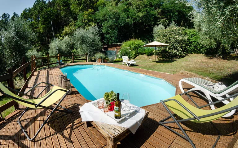 After arriving you will be greeted by the owner or manager where you’ll find a beautiful clean well-maintained property with views of the hills ideal for a relaxing holiday in Tuscany. For your enjoyment you will find a private pool where you can unwind while enjoying a nice cold beverage after a busy day of shopping. Sharing a meal with friends and family is a huge part of the Tuscan culture. Take advantage of the kitchen to prepare meals using local produce while on your vacation. The kitchen includes coffee machine, stove and refrigerator, as well as, plenty of tableware and cutlery for up to five people. Dine 'al fresco' like a real Tuscan, the fully furnished veranda is the perfect setting to enjoy food, family and the beautiful Tuscan weather.