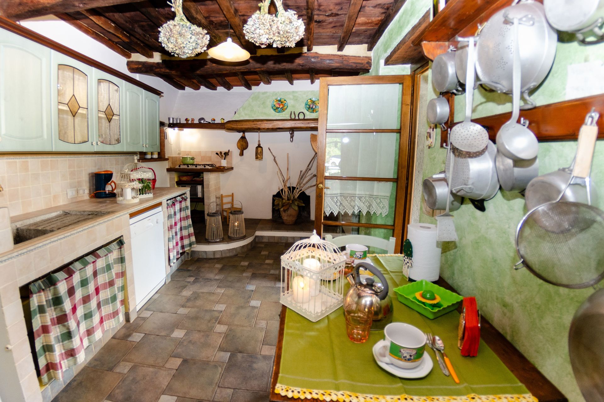Kitchen: dishwasher, fridge, freezer, stove top, oven, american coffee machine, washing machine, fireplace, exit to the veranda.