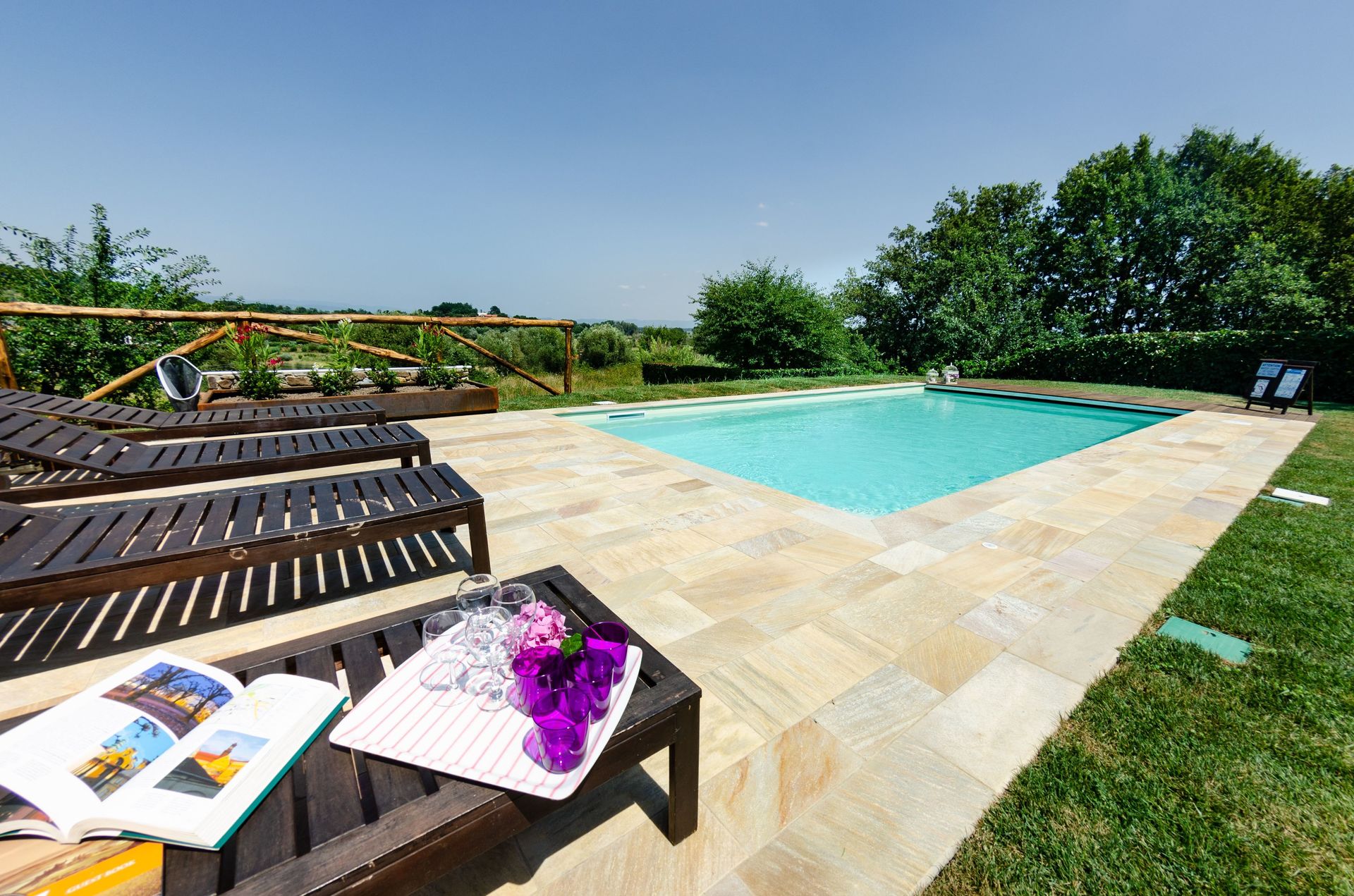 After arriving at Villa Alexia you’ll find a lovely clean well-maintained property with views of the hills ideal for a splendid vacation in Tuscany. For your pleasure you will find a private pool where you can relax while enjoying a nice cold beverage after a hectic day of sightseeing. Outdoors you will also find a barbecue grill and playground. Dining with friends and family is a huge part of the Tuscan culture. Take advantage of the kitchen to prepare meals using local produce while on your vacation. The kitchen includes stove and refrigerator, as well as, plenty of tableware and cutlery for up to ten people. Dine 'al fresco' like a real Tuscan, the fully furnished garden is the perfect setting to enjoy food, family and the nice Tuscan weather.
