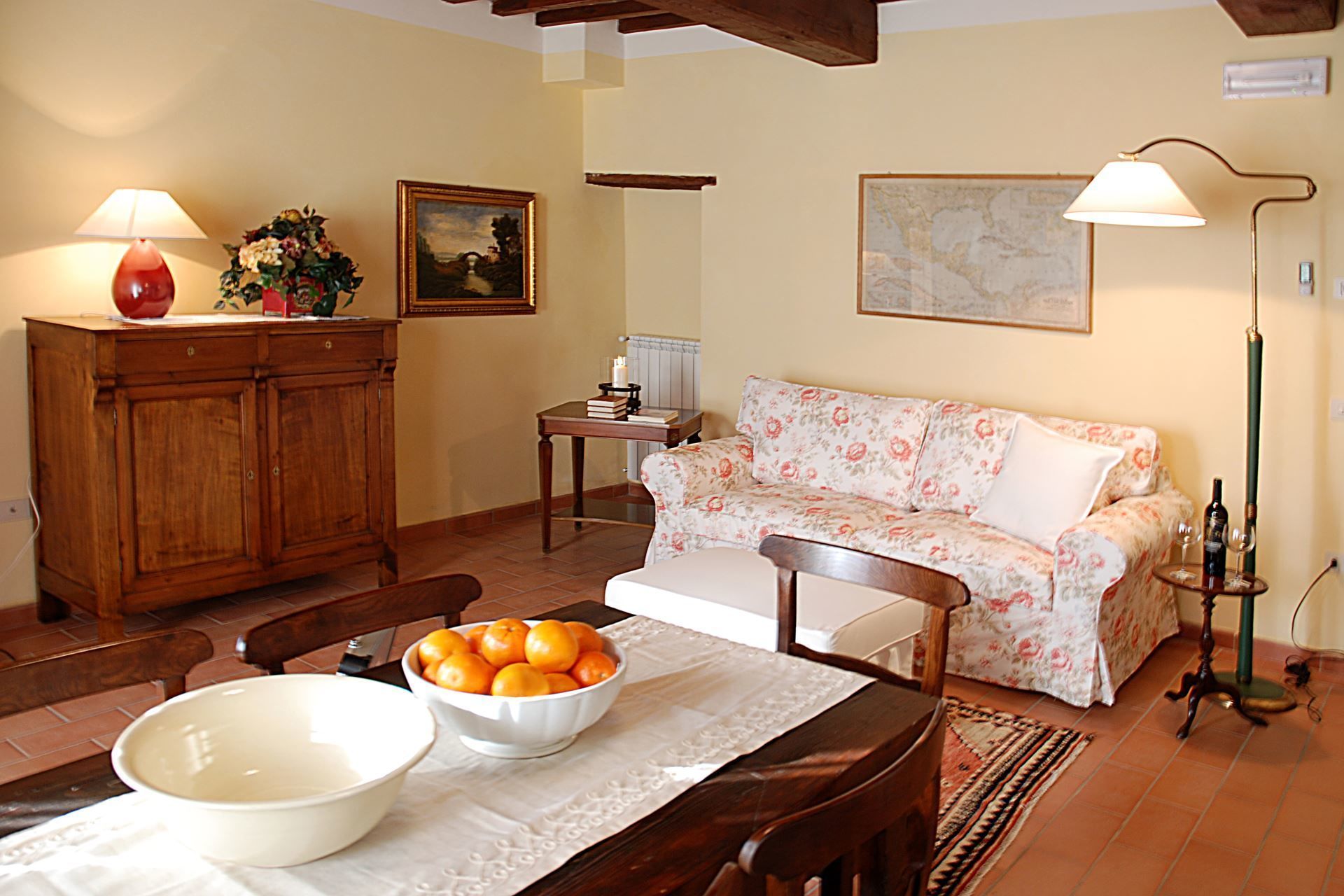 Ground-floor apartment accessible by wheelchair. Small private porch with entrance on the living-dining room with kitchen corner, sofa and satellite TV. Double bedroom, twin bedroom, bathroom with wheelchair-accessible shower and grab bars.