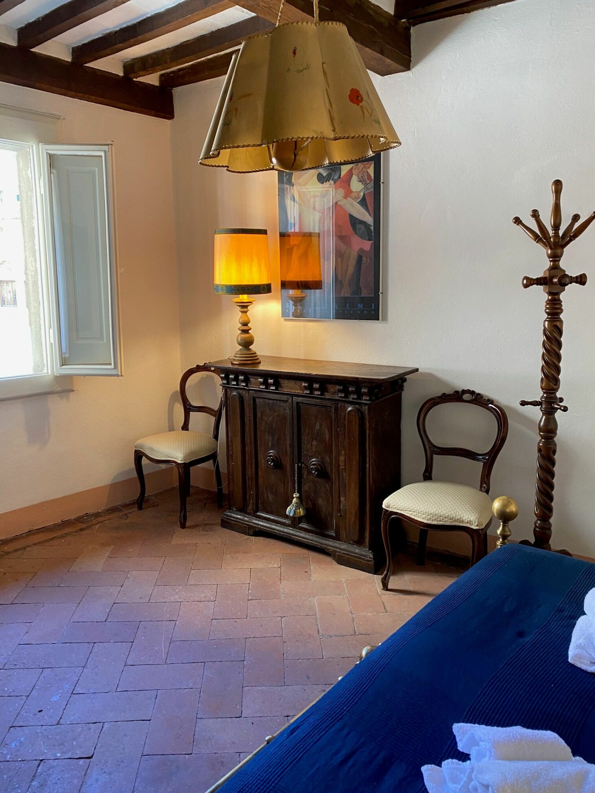Upon arrival at Susanna House you’ll find a nice clean well-maintained property with views of the city ideal for a peaceful vacation in Tuscany. After a hectic day of visiting museums, spend some time with friends and family enjoying a glass of wine - a perfect way to relax at the end the day. If you enjoy cooking for family and friends there is a well-equipped kitchen including coffee machine, toaster and refrigerator, as well as, plenty of tableware and cutlery for up to seven people.