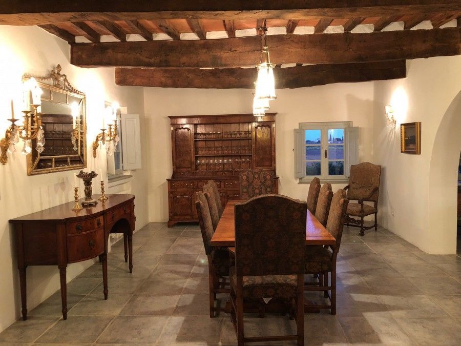 Garden (5000 m2): swimming pool (private, length: 12m, width: 6m, max. depth: 2.5m, min. depth: 1.5m, outdoor), shower, WIFI internet, barbecue, al fresco dining, dining table (people: 10), gazebo, garden furniture, terrace furniture, ten sunbeds.