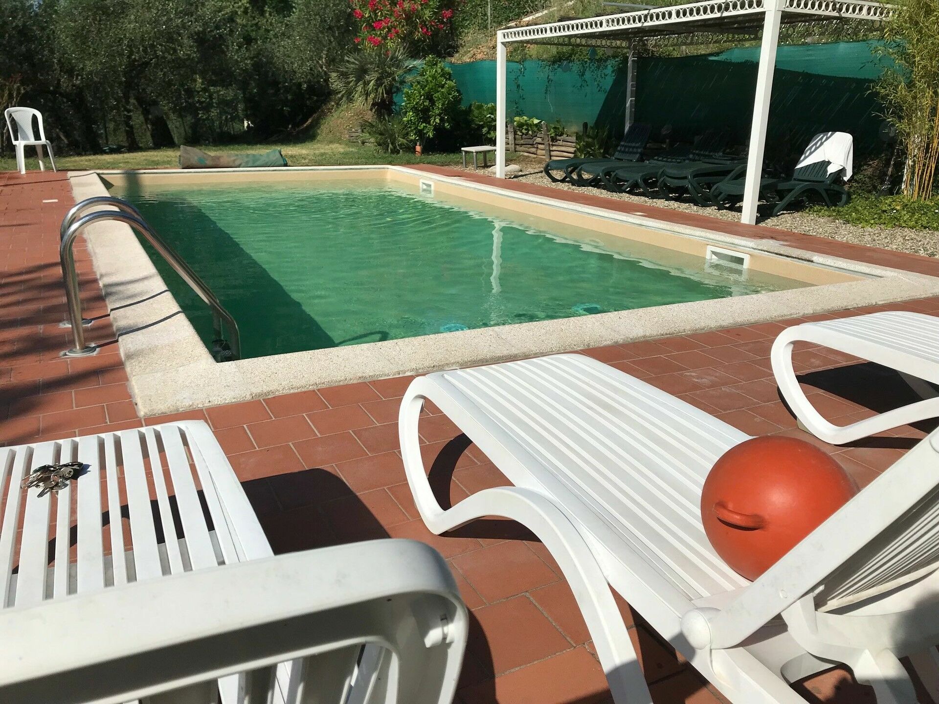 Private outdoor area equipped with table, chairs, barbeque and sun-umbrella. Private swimming pool (built in earth 9 x 4m, deep: 1.40m) which disposes of a gazebo, deckchairs, tables, sun-umbrellas, external shower and magnificent views onto the valley. Guests will spend here a relaxing holiday, will enjoy the outdoor life on a special spot.