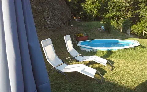 After arriving you will be welcomed by the owner or manager where you’ll find a lovely clean well-maintained property with views of the mountains perfect for a splendid vacation in Tuscany. After a hectic day of sightseeing, spend some time with friends and family poolside enjoying a glass of wine - a perfect way to unwind at the end the day. Outdoors you will also find a barbecue grill and playground. Sharing a meal with friends and family is a big part of the Tuscan culture. Take advantage of the kitchen to prepare meals using local produce while on your vacation. The kitchen includes stove and refrigerator, as well as, plenty of tableware and cutlery for up to six people. Dine 'al fresco' like a real Tuscan, the fully furnished garden is the ideal setting to enjoy food, family and the nice Tuscan weather.