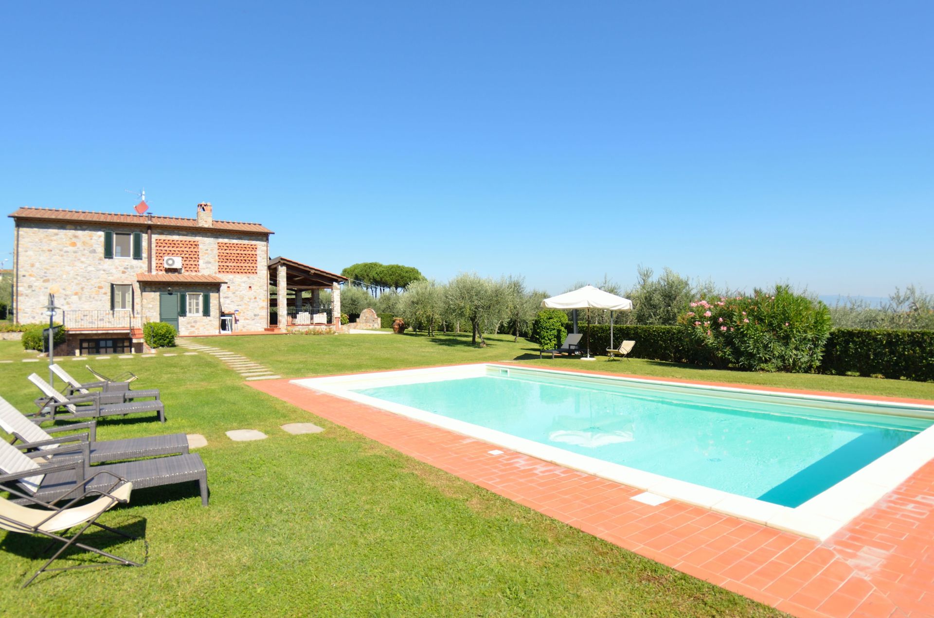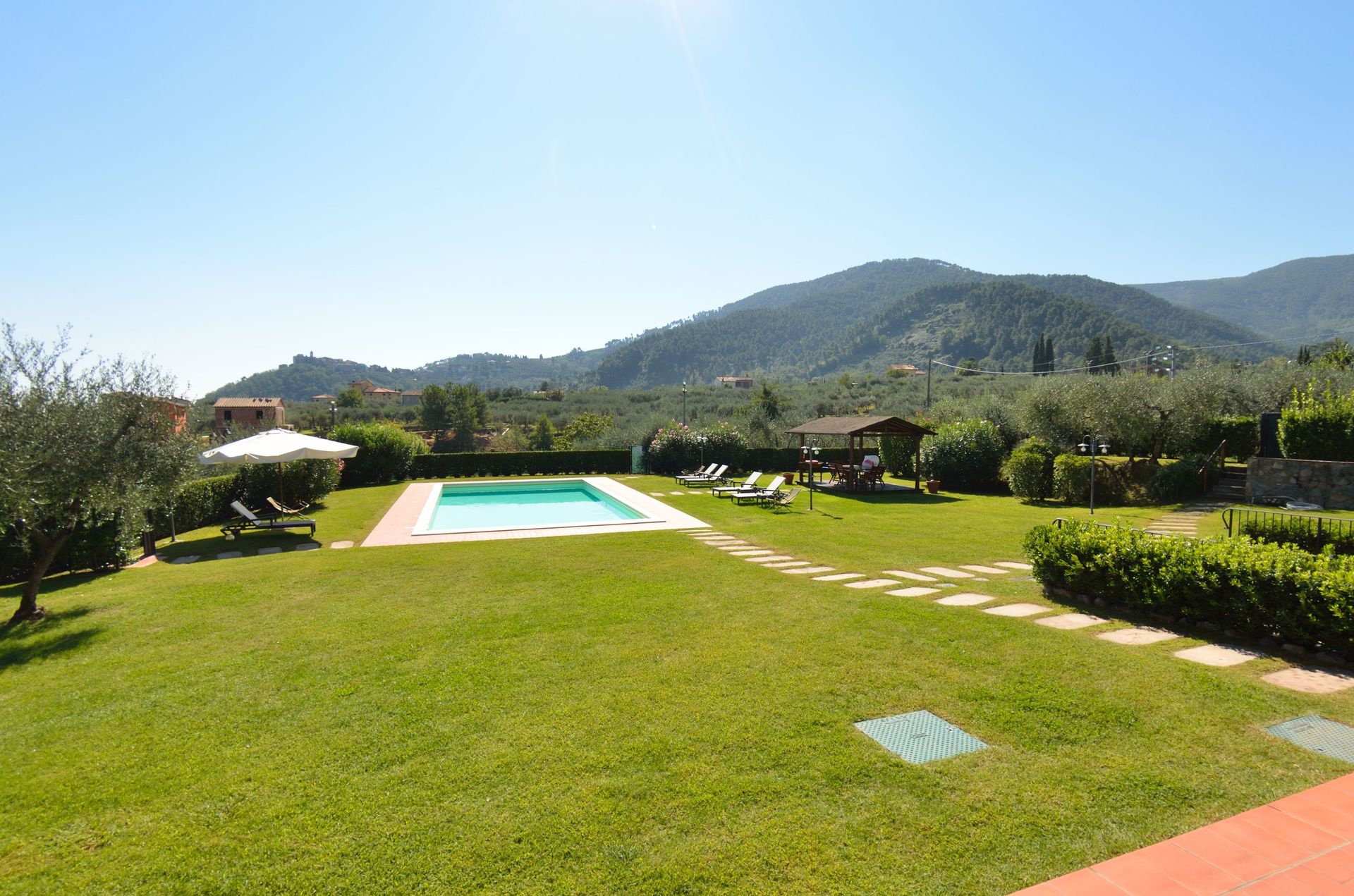 La Lanterna is a nice stone building (250 sq m) with air conditioning, private pool and WiFi internet. The property can sleep up to eight people comfortably in four bedrooms with three bathrooms. La Lanterna is located 17 km (11 mi) from Lucca, Italy and only 32 km (20 mi) from Pisa.