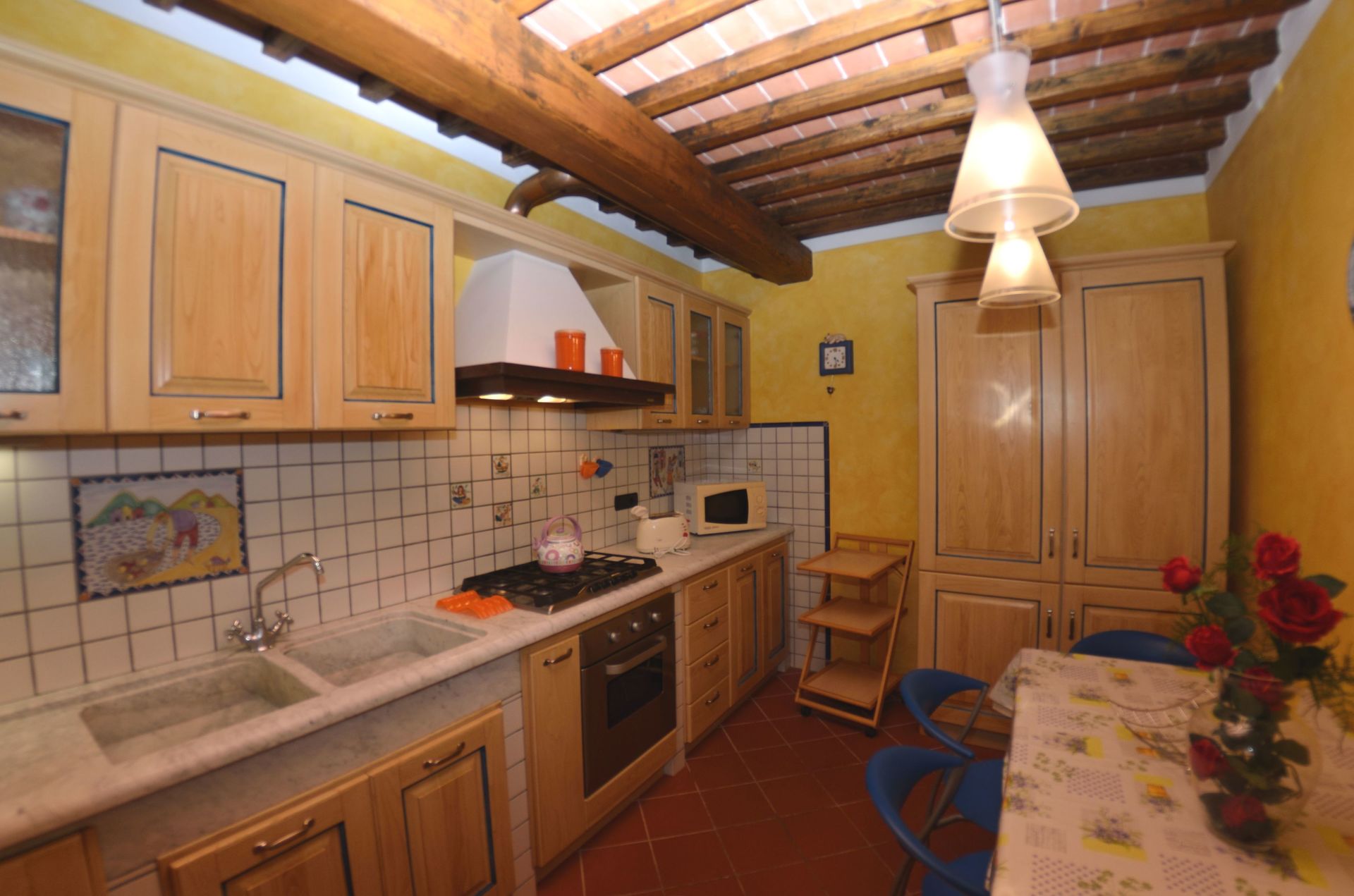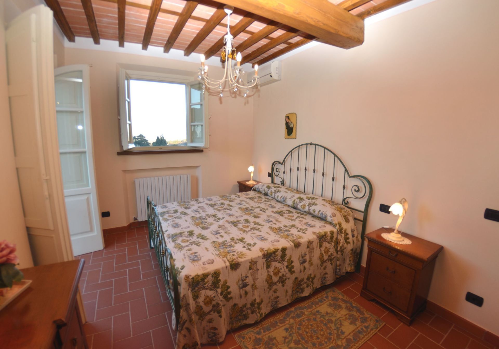 After arriving you will be welcomed by the owner or manager where you’ll find a lovely clean well-maintained property with views of the hills perfect for a splendid vacation in Tuscany. For your pleasure you will find a private pool where you can unwind while enjoying a nice cold beverage after a hectic day of visiting museums. Outside you will also find a barbecue grill and playground. There is a kitchen including coffee machine, microwave, toaster, stove and refrigerator, as well as, plenty of tableware and cutlery for up to eight people. If you prefer to dine 'al fresco', there is a fully furnished veranda where you can enjoy the weather while dining outdoors.