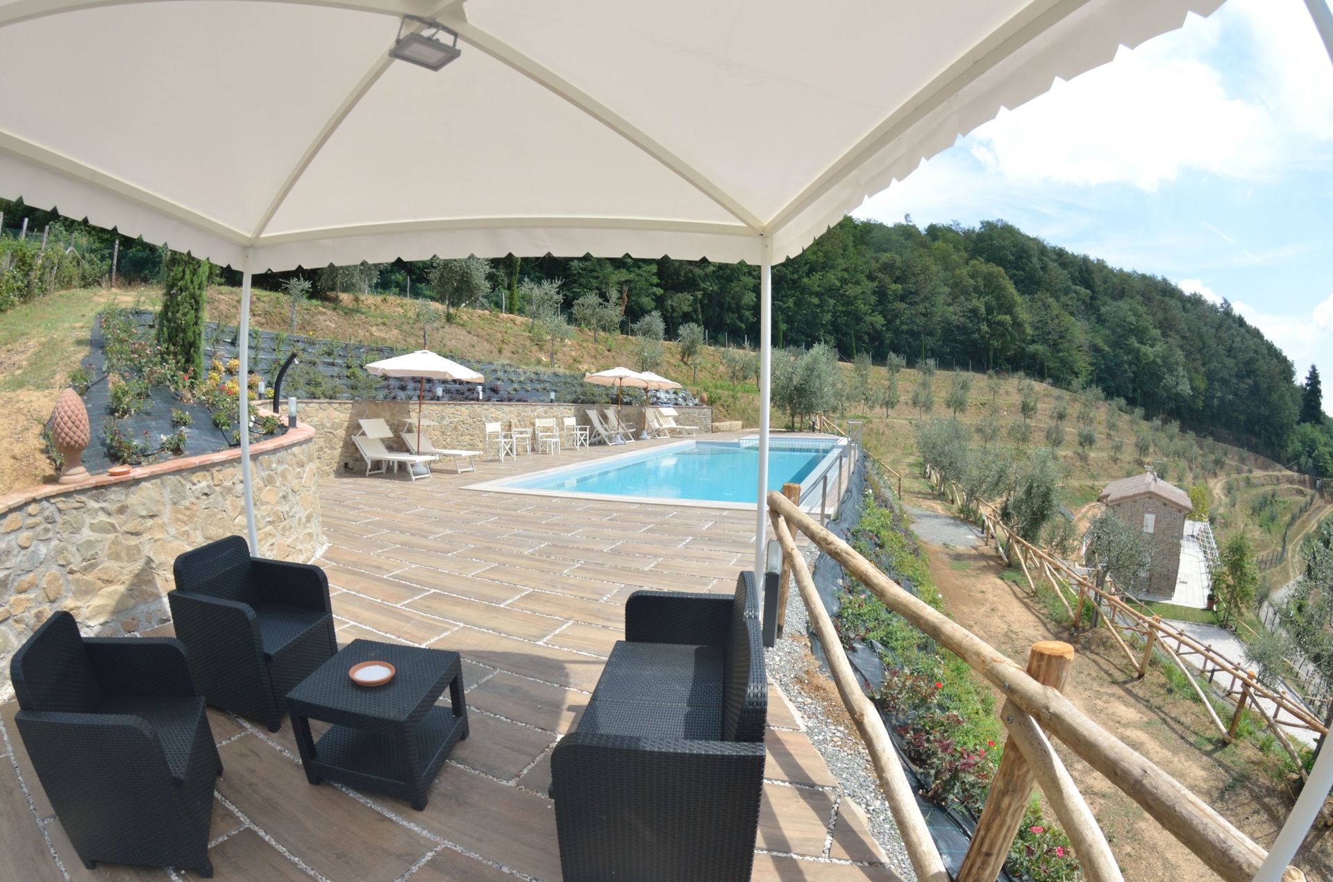 After arriving at Villa Orchidea you’ll find a lovely clean well-maintained property with views of the hills ideal for a splendid vacation in Tuscany. After a busy day of shopping, spend some time with friends and family poolside enjoying a glass of wine - a perfect way to unwind at the end the day. Outdoors you will also find a playground and barbecue grill. Sharing a meal with friends and family is a big part of the Tuscan culture. Take advantage of the kitchen to prepare meals using local produce while on your holiday. The kitchen includes coffee machine, stove and refrigerator, as well as, plenty of tableware and cutlery for up to eight people. Dine 'al fresco' like a real Tuscan, the fully furnished veranda is the ideal setting to enjoy food, family and the nice Tuscan weather.