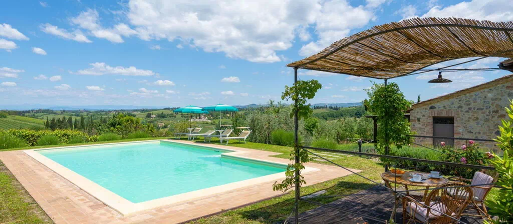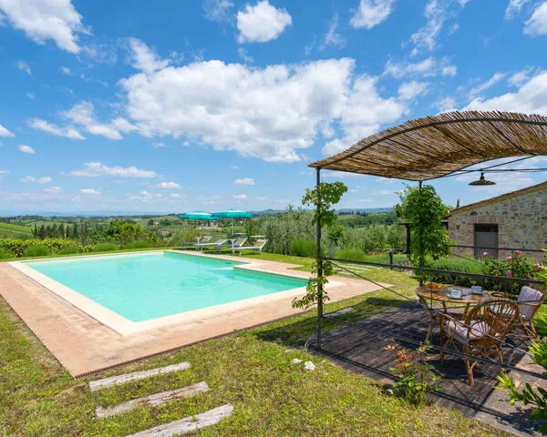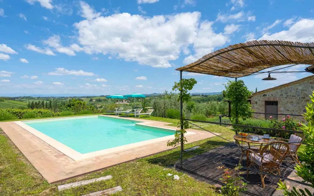 Nestled in the picturesque Chianti hills of Tuscany, Italy, Villa "Alba" is a beautifully restored former hayloft that has been completely renovated to offer a unique and comfortable holiday rental experience. This detached villa enjoys a quiet and sunny position just 3 kilometers from the iconic medieval town of San Gimignano, renowned for its magnificent tower-filled skyline, allowing you to savour the tranquillity of the Tuscan countryside without sacrificing proximity to the region's most celebrated destinations. The property features a private fenced garden of 500 square meters, providing an intimate and secure outdoor retreat exclusively for your enjoyment. A generously sized swimming pool measuring 11 x 6 meters and 140 centimeters in depth serves as the centrepiece of the outdoor space, available seasonally from May 11th to October 5th. Parking is conveniently available on the premises, and the villa is equipped with internet wifi, ensuring you remain connected throughout your stay.