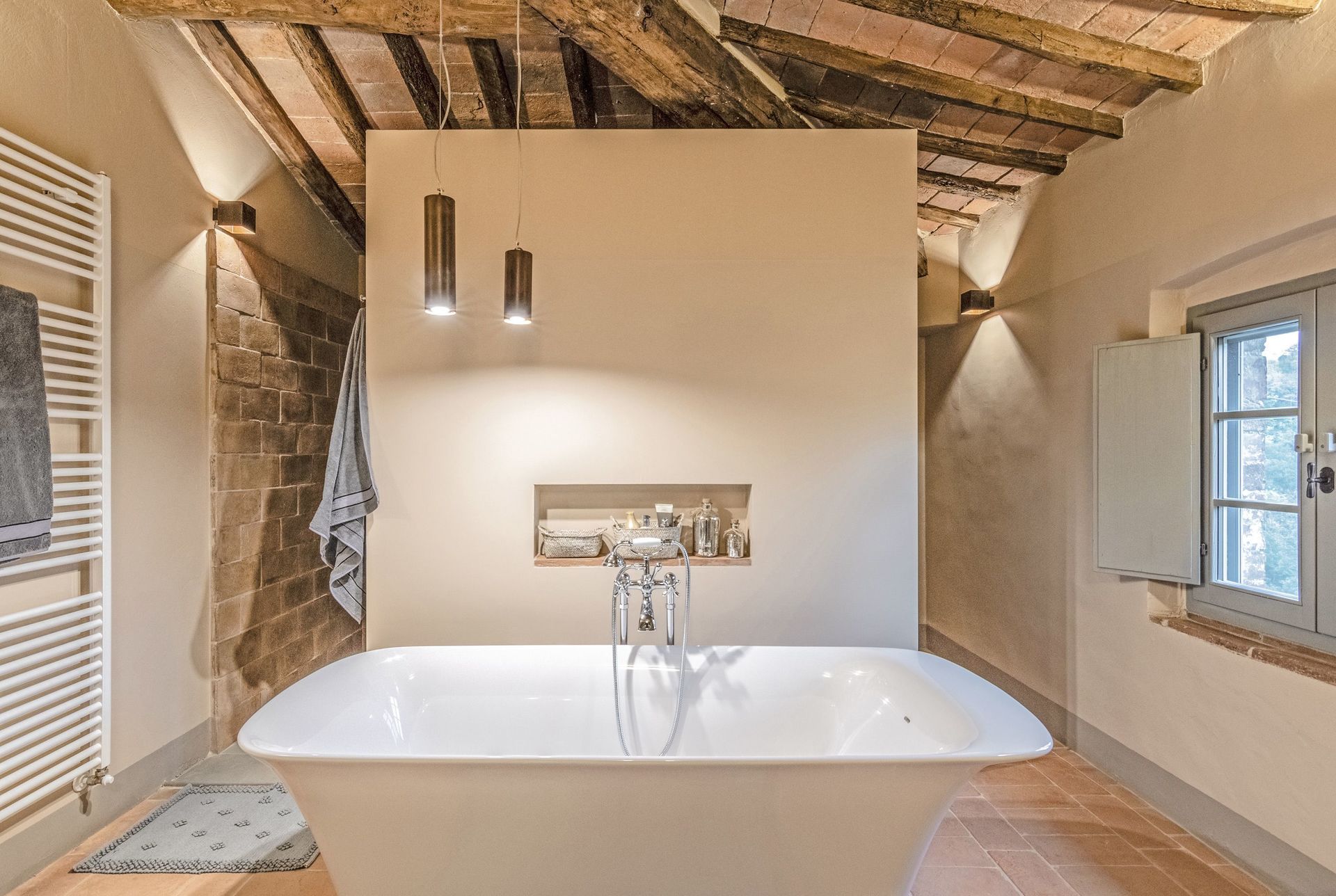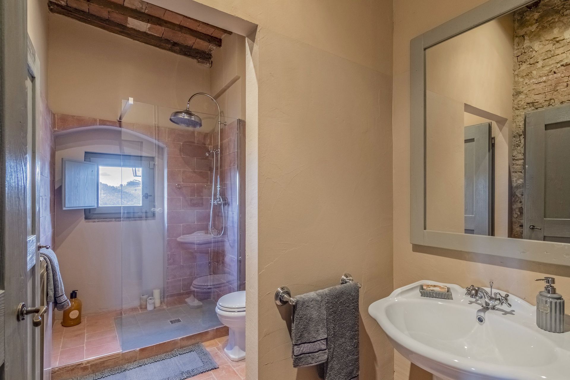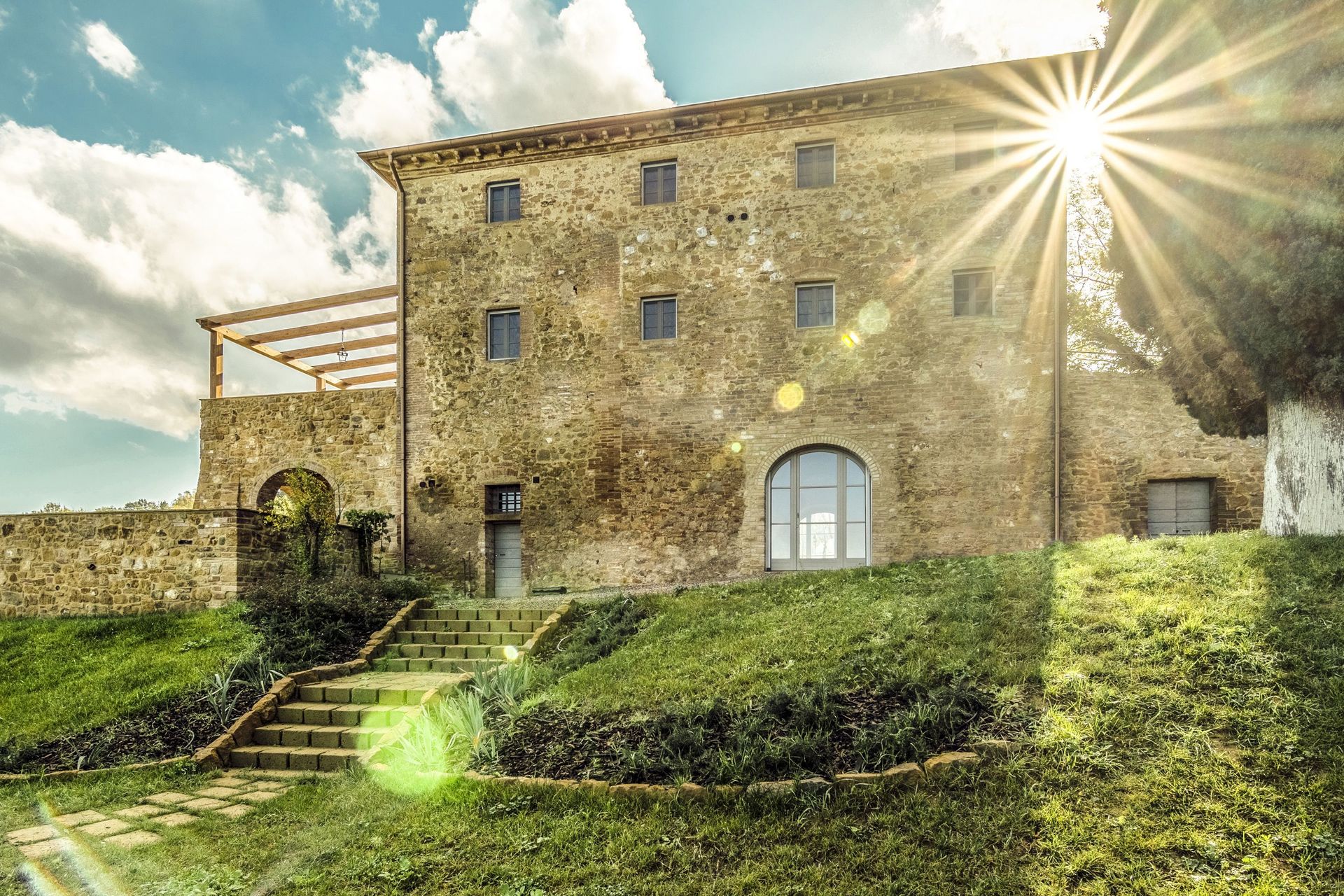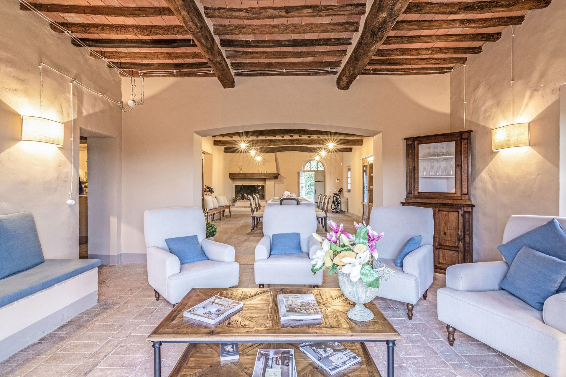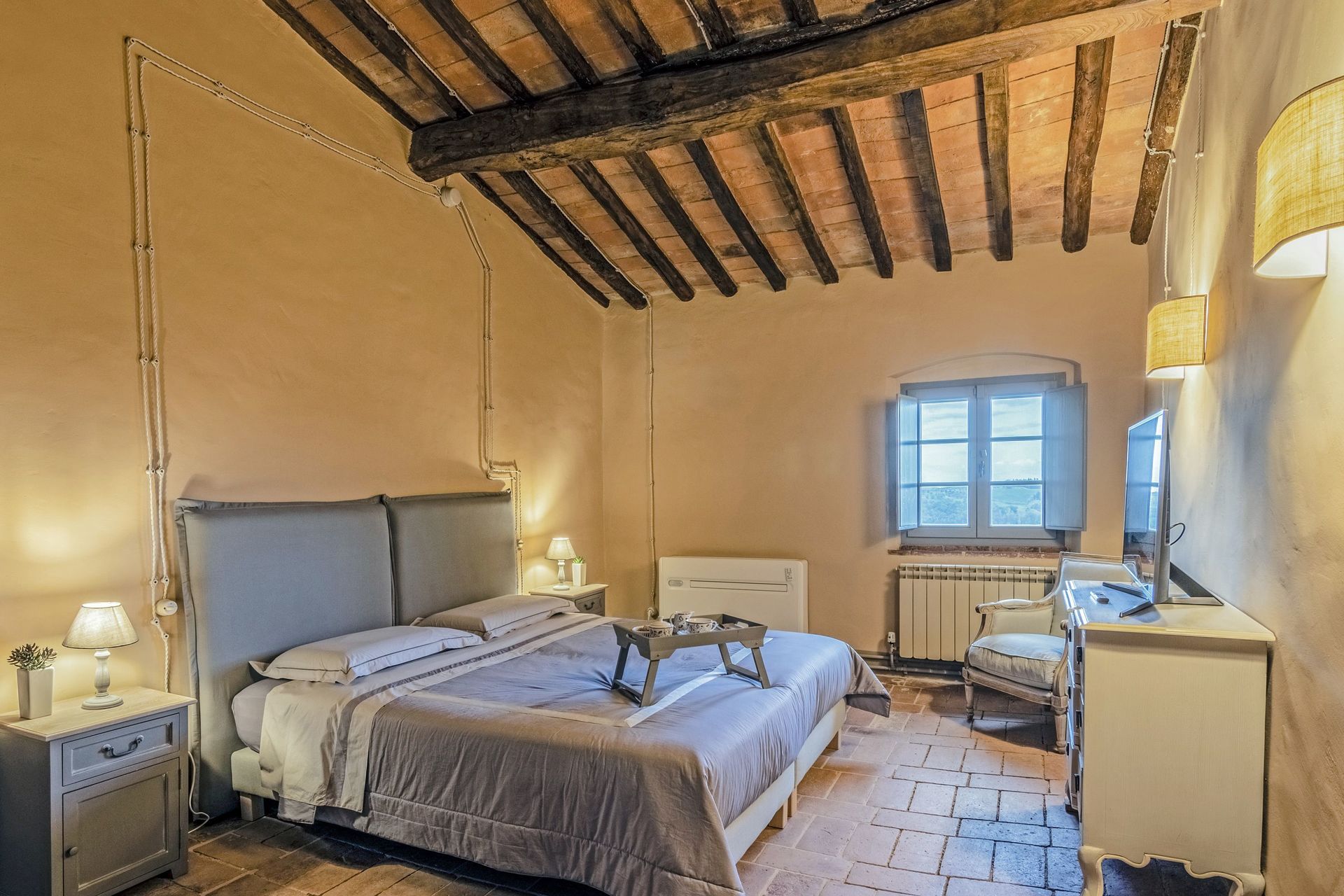 The villa sits in a tranquil area with panoramic views, surrounded by nature while at the same time close to historic places such as Volterra, San Gimignano, Pisa, Lucca and Florence.