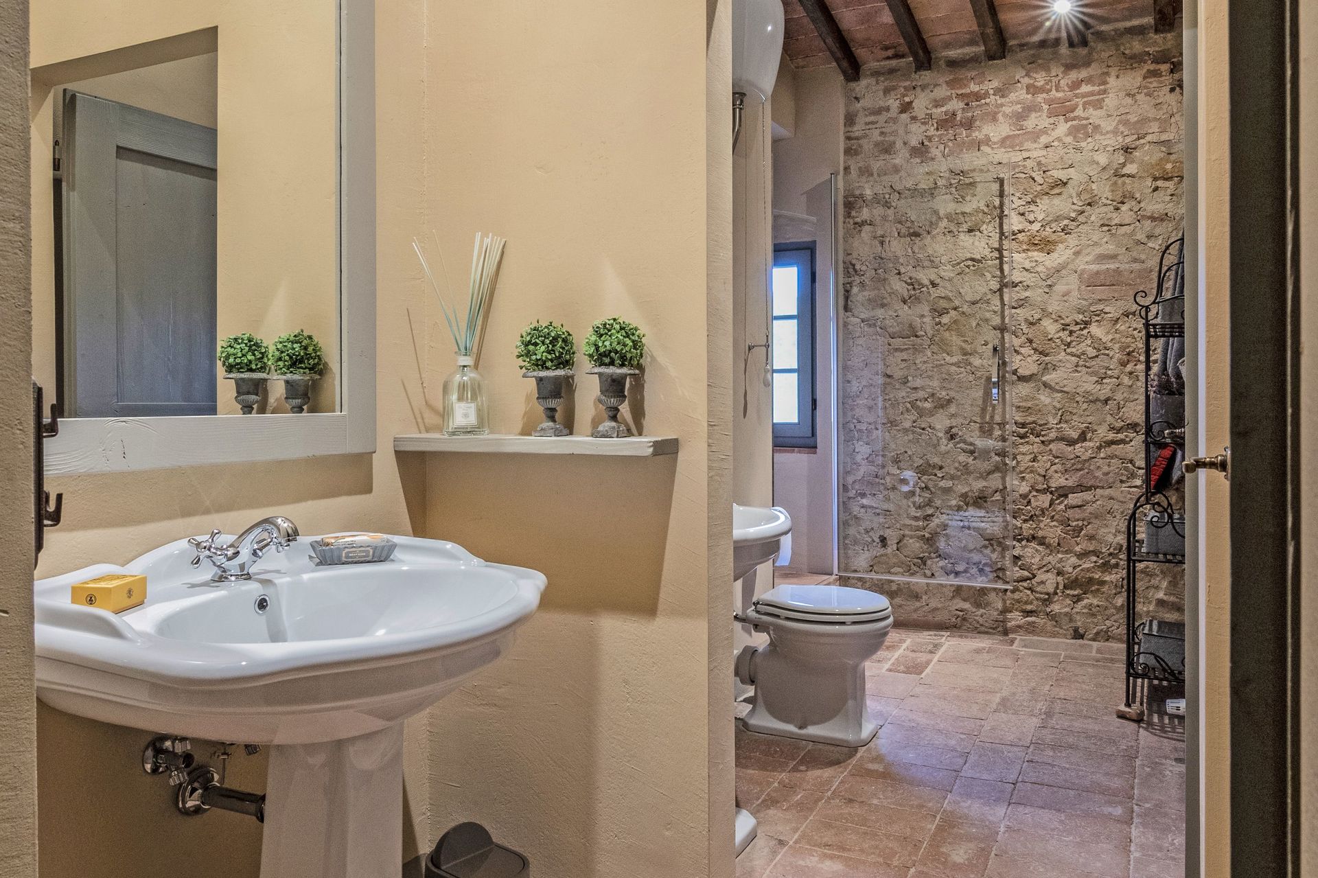 Distances: Castelfalfi (food shops and restaurants) 1 km; Montaione (shops of all kinds) 12 km, San Gimignano 23 km, Volterra 35 km, Siena 60 km, Pisa 60 km, Florence 65 km.