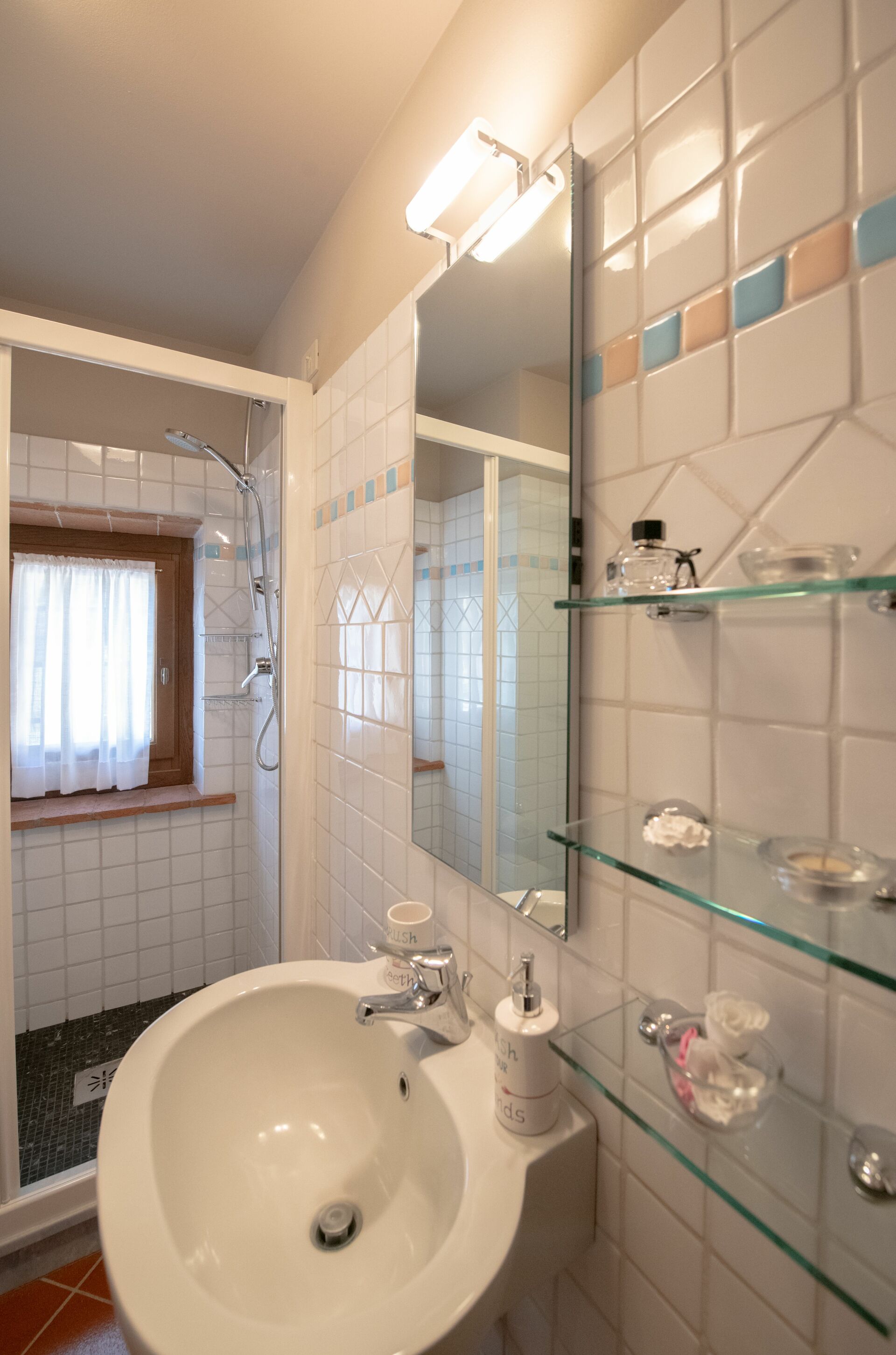 Bathroom: basin, toilet, bidet, shower.