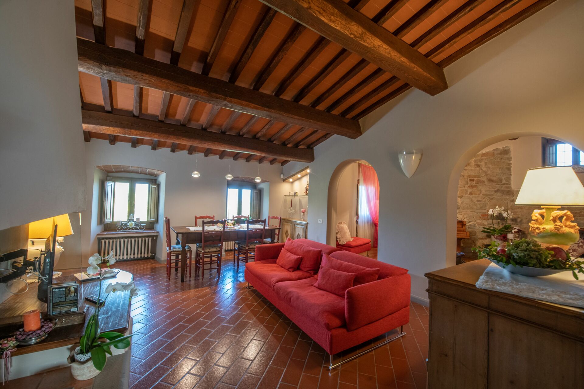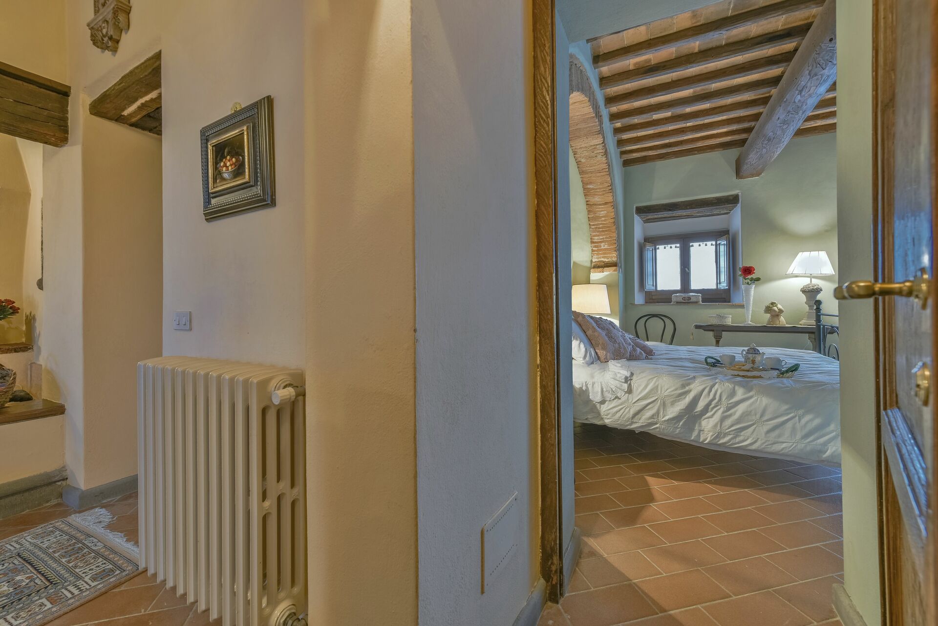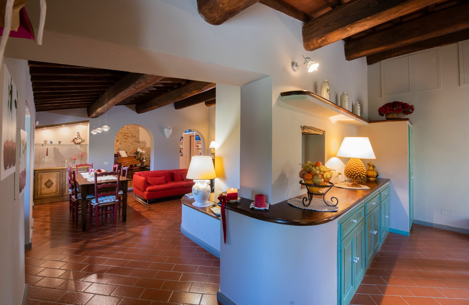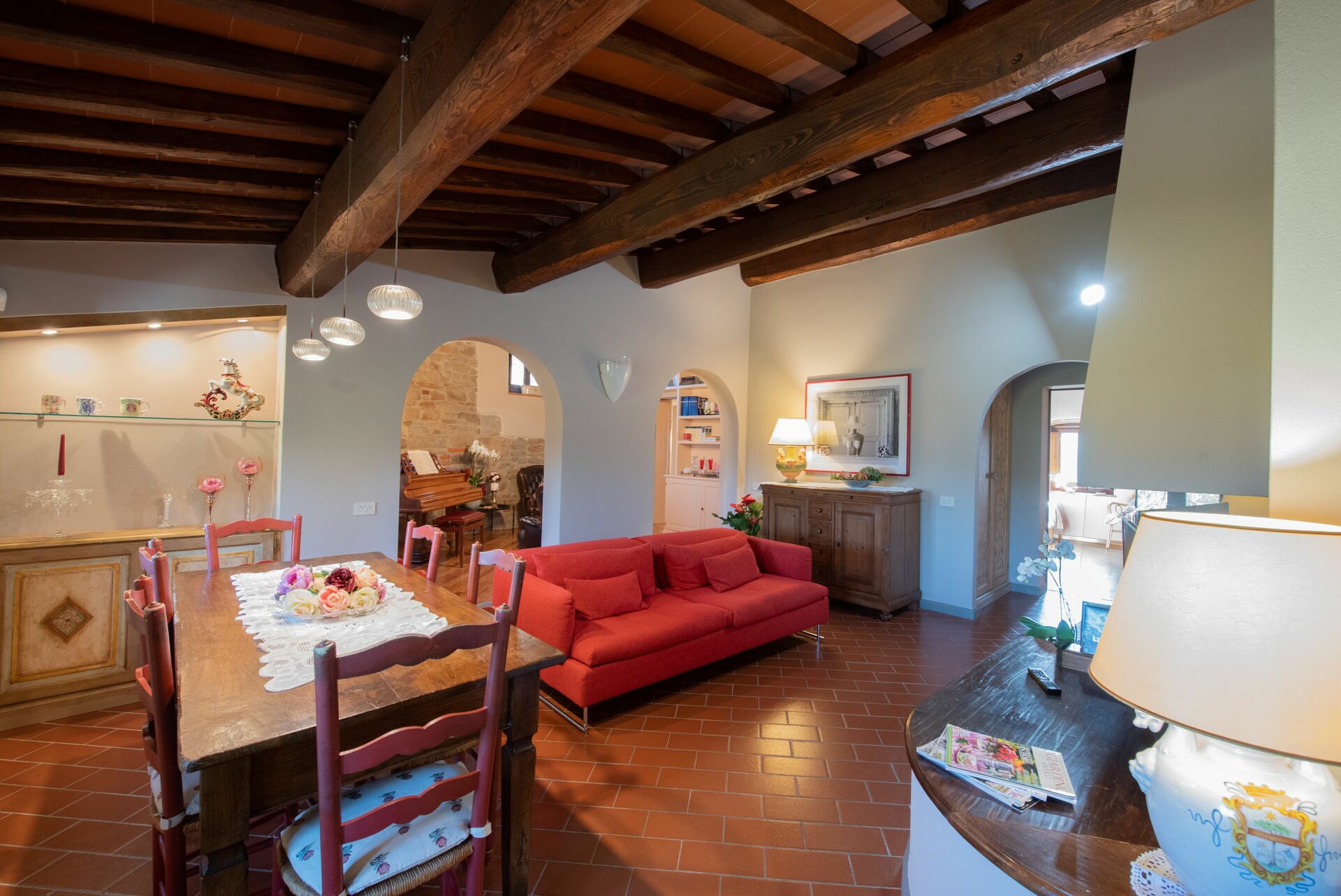 When you arrive you’ll find a nice clean well-maintained property with views of the hills perfect for a peaceful vacation in Tuscany. For your enjoyment you will find a private pool where you can relax while enjoying a nice cold beverage after a busy day of sightseeing. For your pleasure, on the grounds there is a playground and barbecue grill. There is a kitchen including coffee machine, microwave, toaster and refrigerator, as well as, plenty of tableware and cutlery for up to 14 people. If you prefer to dine 'al fresco', there is a fully furnished veranda where you can enjoy the weather while dining outdoors.