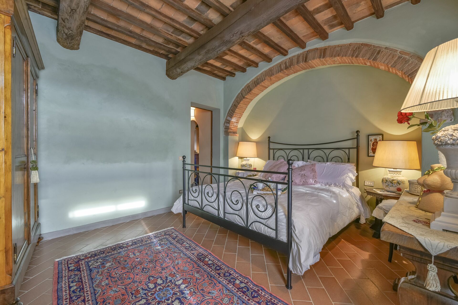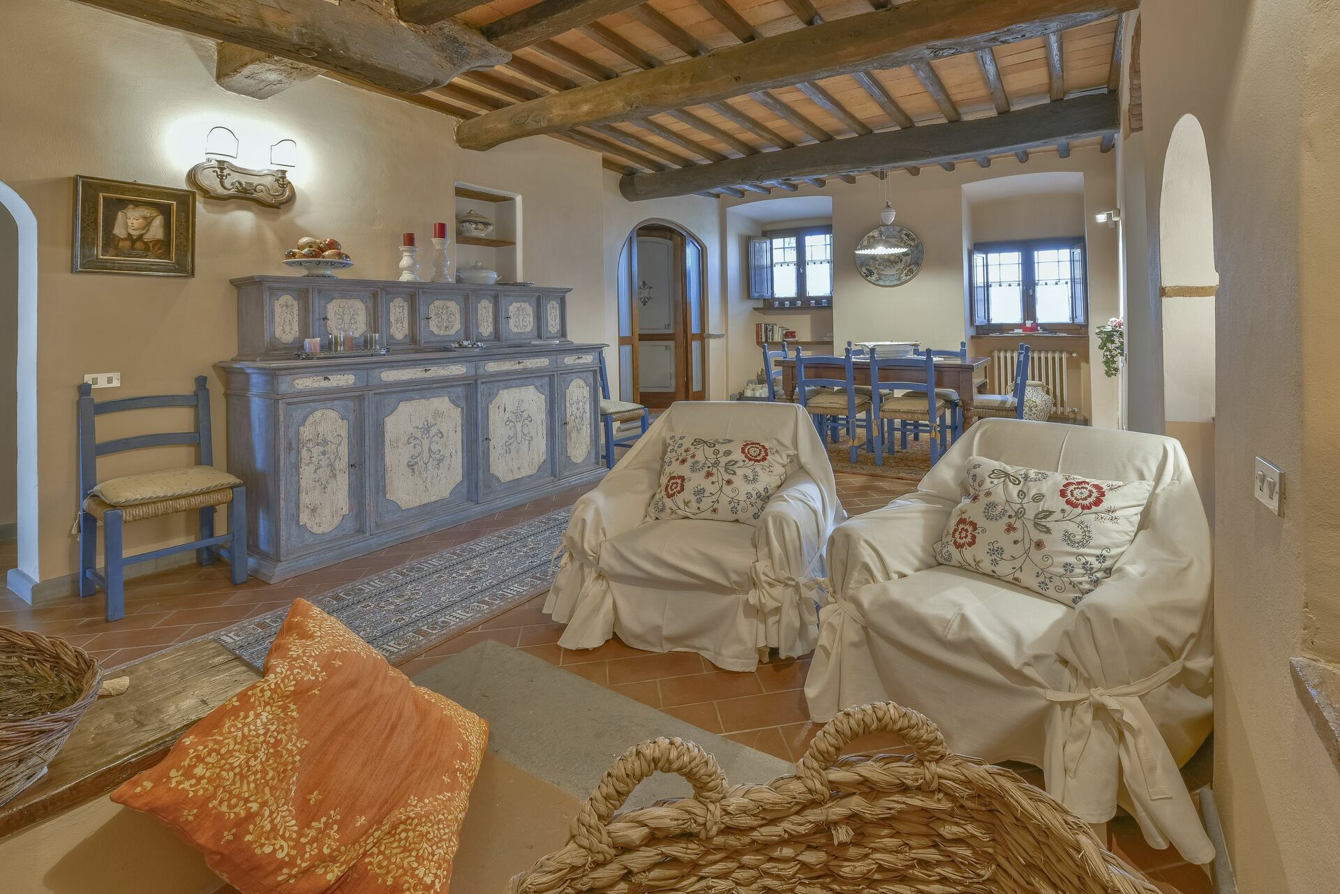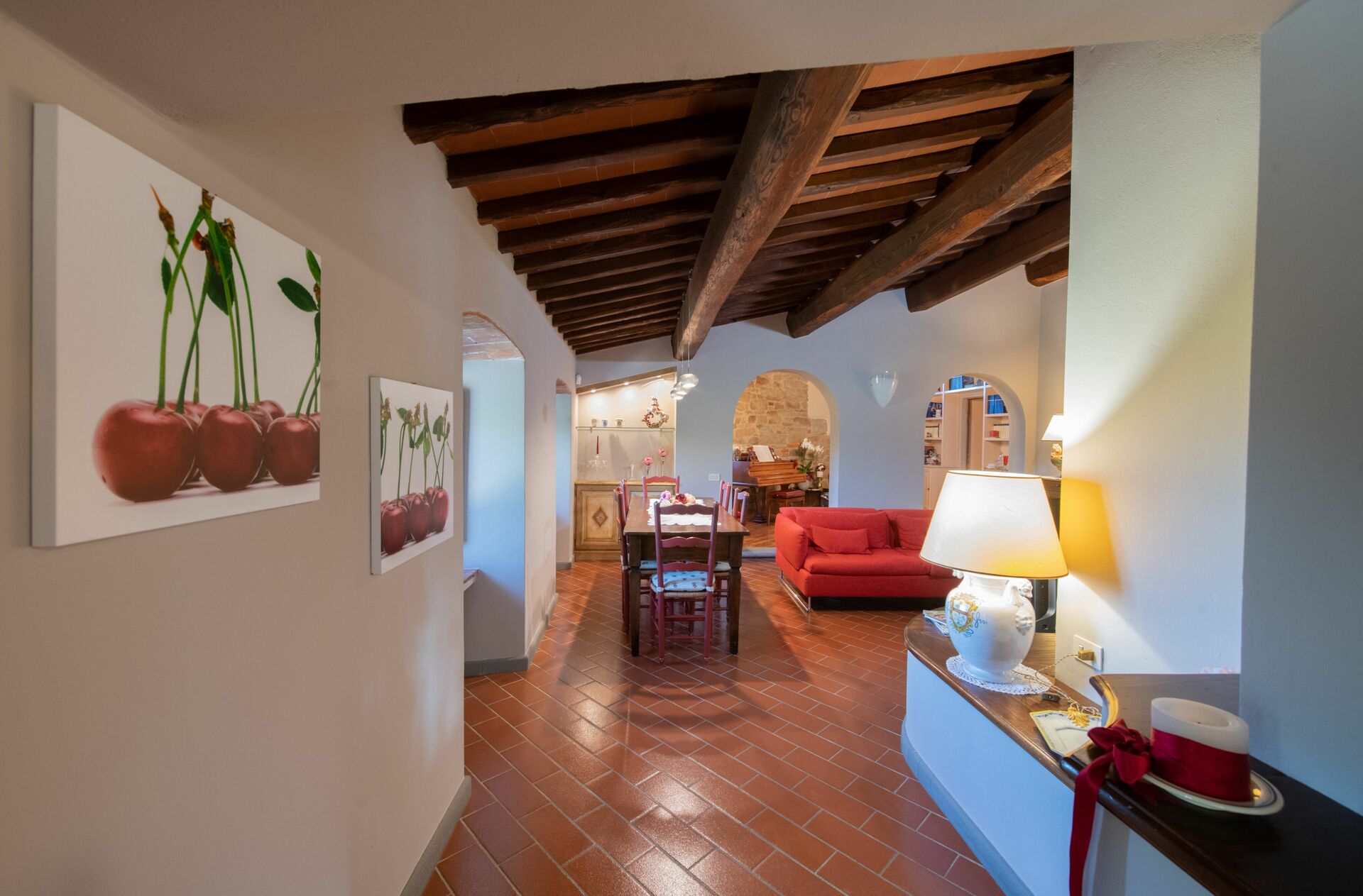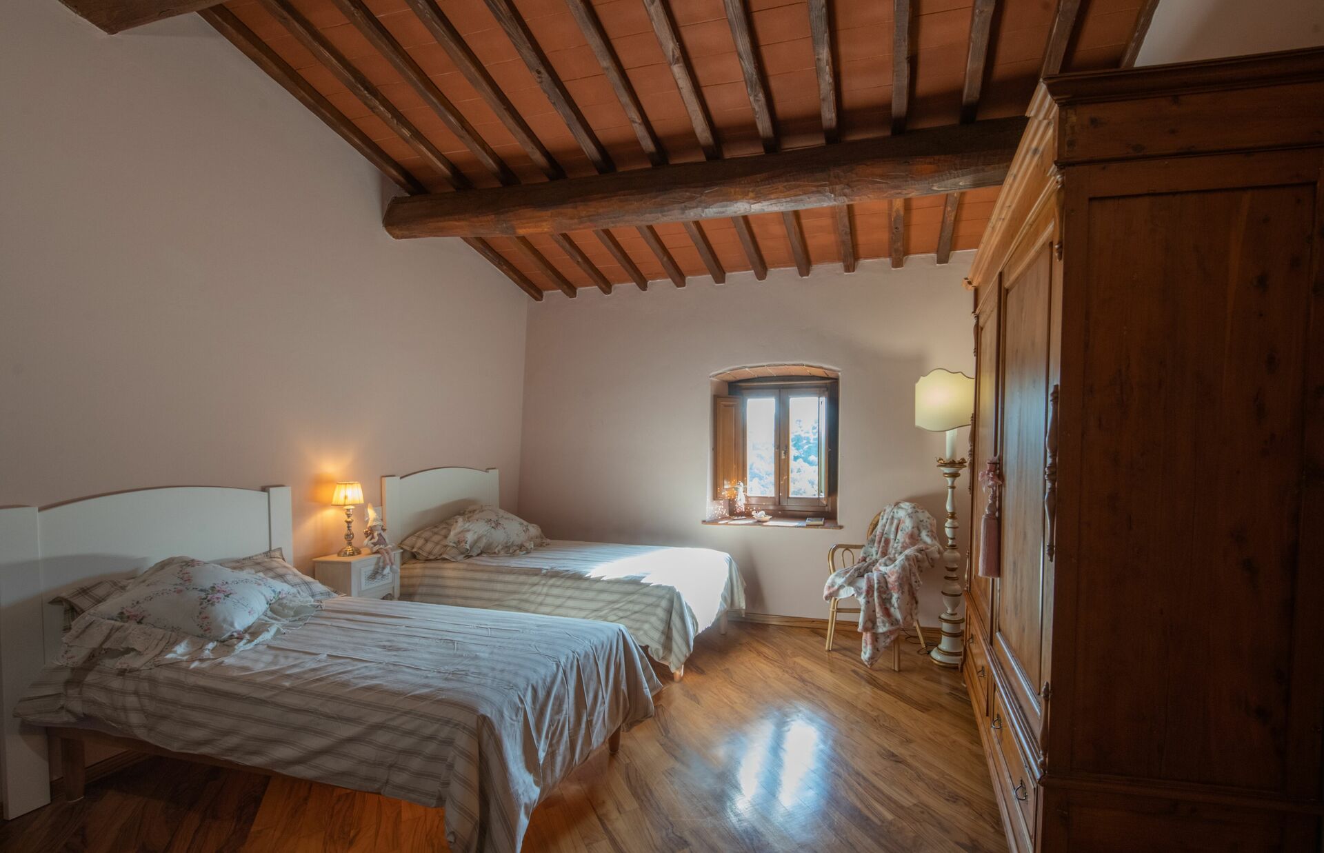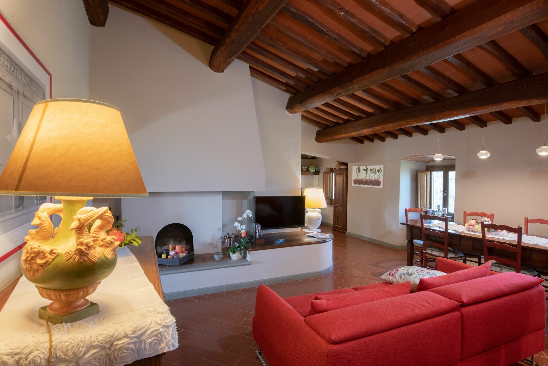 When you arrive you’ll find a nice clean well-maintained property with views of the hills perfect for a peaceful vacation in Tuscany. For your enjoyment you will find a private pool where you can relax while enjoying a nice cold beverage after a busy day of sightseeing. For your pleasure, on the grounds there is a playground and barbecue grill. There is a kitchen including coffee machine, microwave, toaster and refrigerator, as well as, plenty of tableware and cutlery for up to 14 people. If you prefer to dine 'al fresco', there is a fully furnished veranda where you can enjoy the weather while dining outdoors.