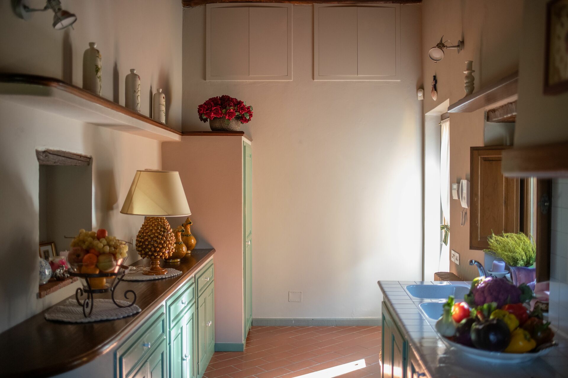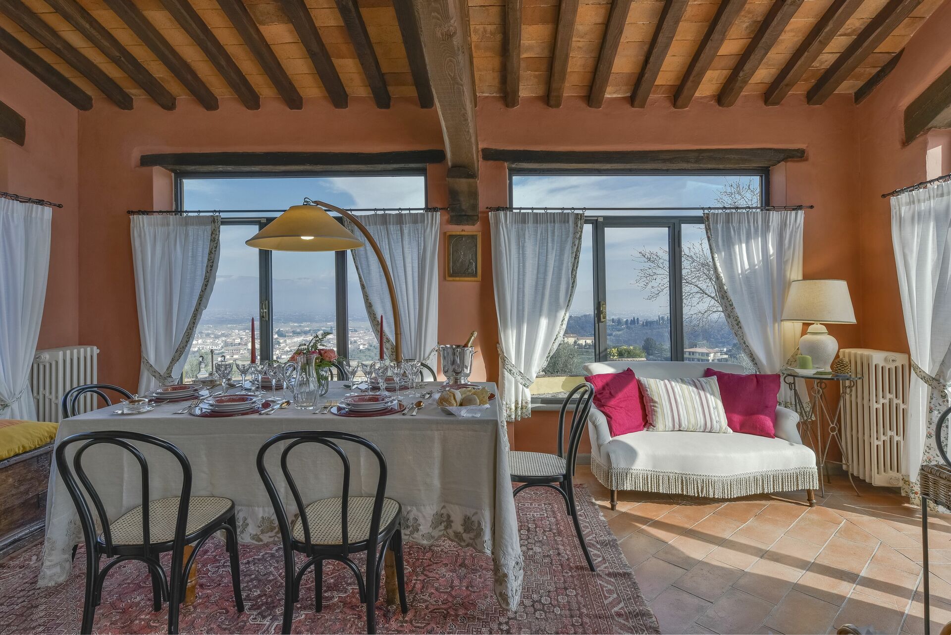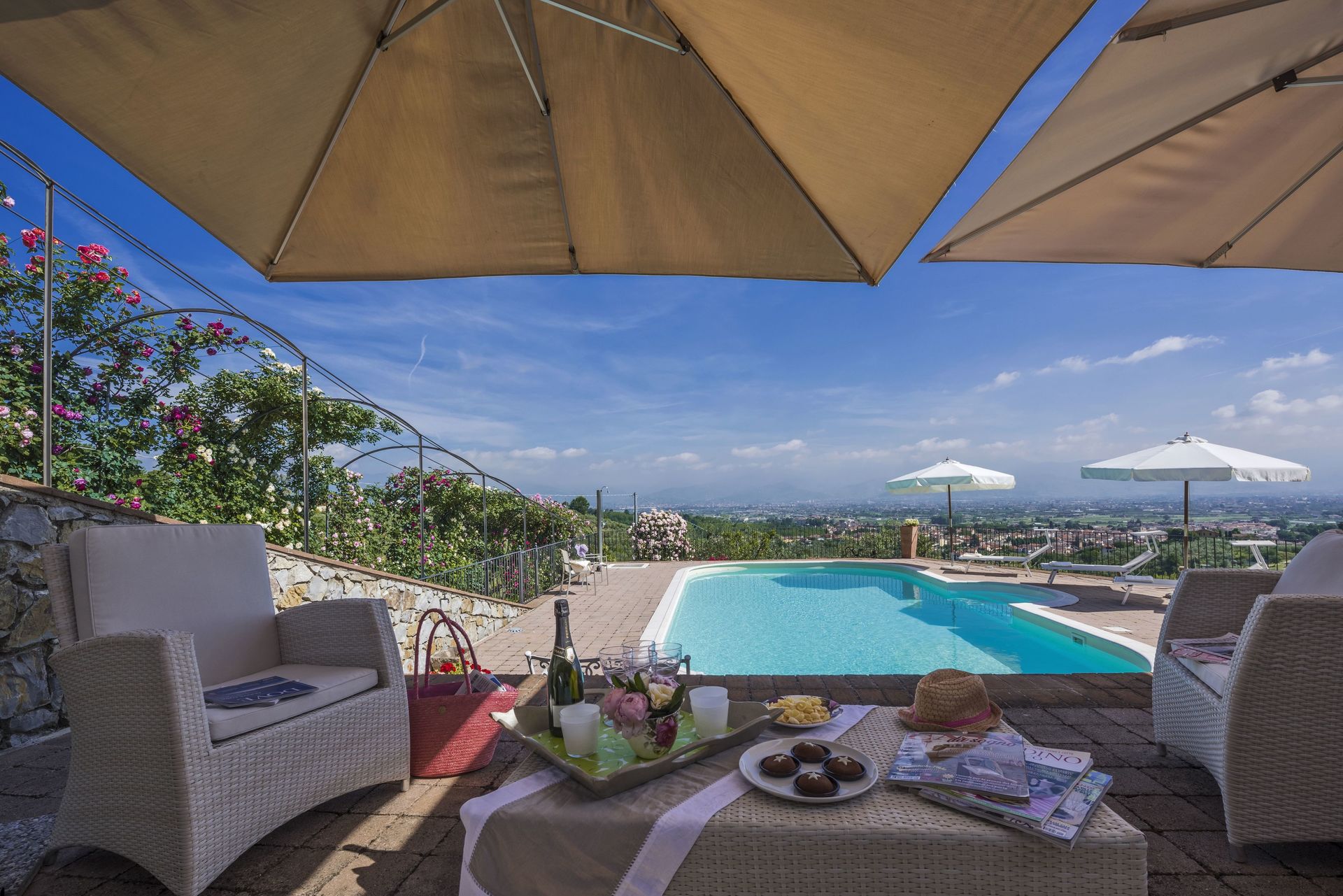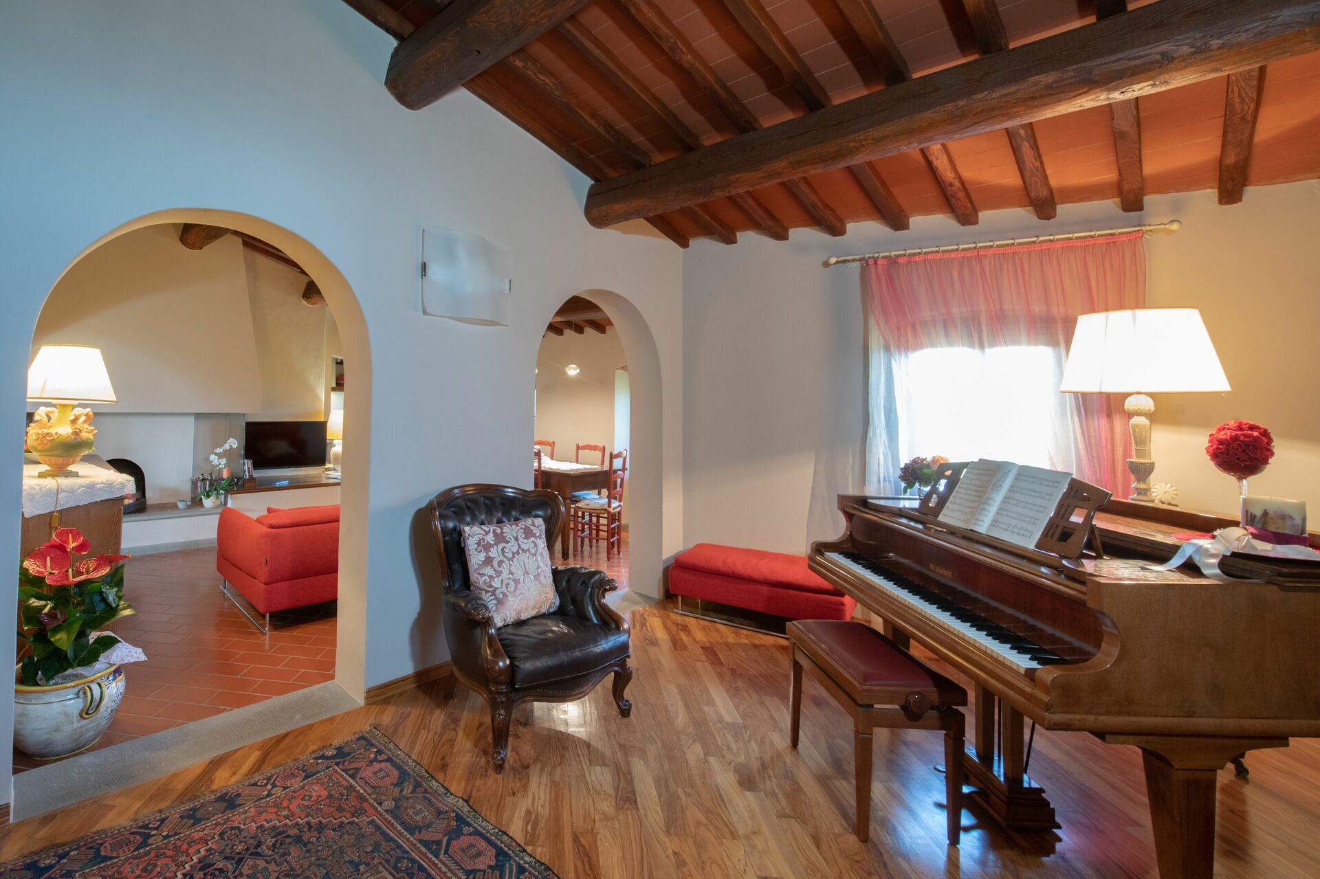 When you arrive you’ll find a nice clean well-maintained property with views of the hills perfect for a peaceful vacation in Tuscany. For your enjoyment you will find a private pool where you can relax while enjoying a nice cold beverage after a busy day of sightseeing. For your pleasure, on the grounds there is a playground and barbecue grill. There is a kitchen including coffee machine, microwave, toaster and refrigerator, as well as, plenty of tableware and cutlery for up to 14 people. If you prefer to dine 'al fresco', there is a fully furnished veranda where you can enjoy the weather while dining outdoors.