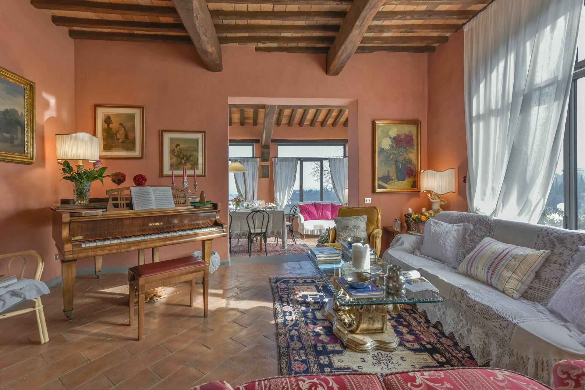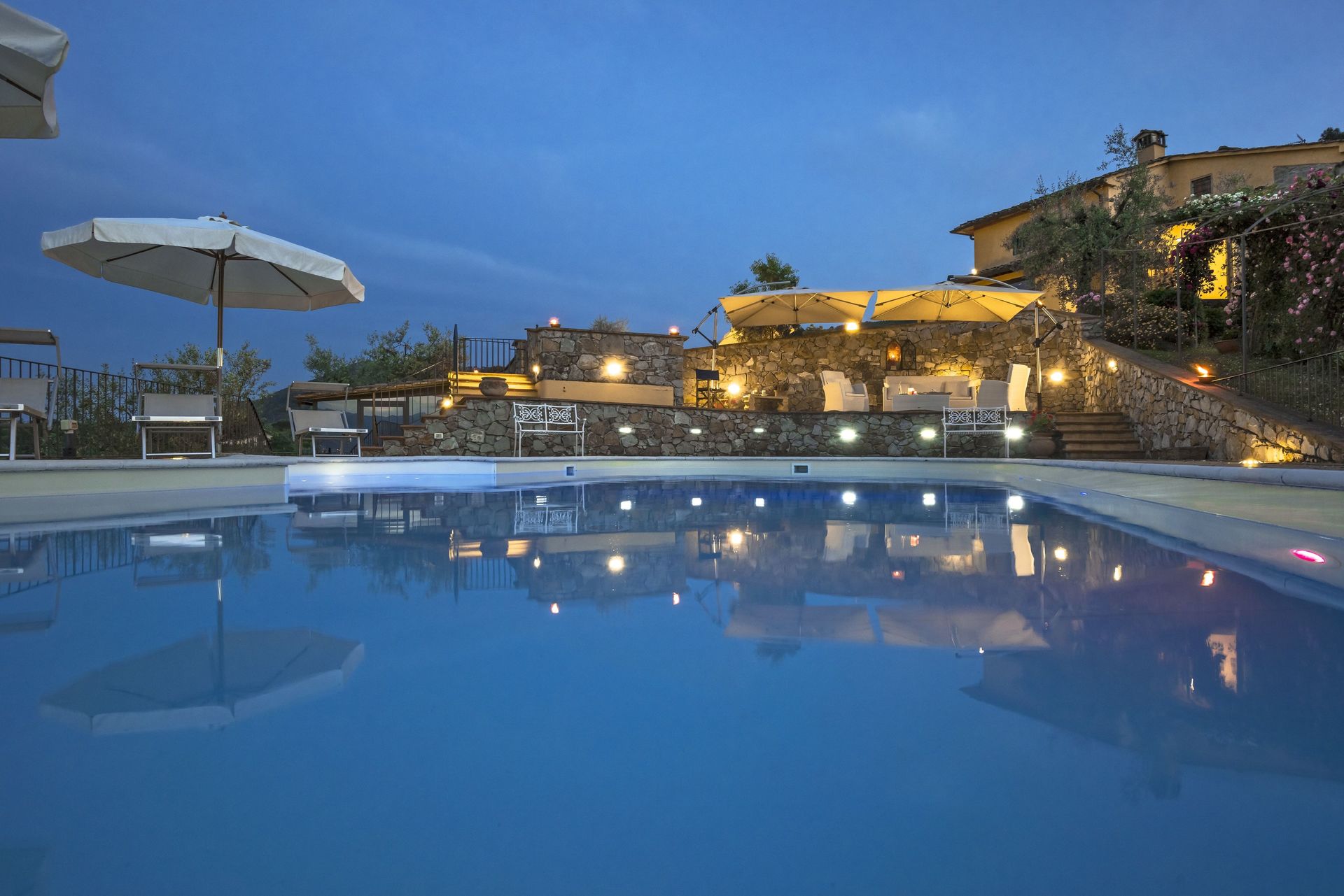Conveniently located 2 km (1 mi) from Cantagrillo, Italy in the tourist area "Florence And Surroundings" and only 43 km (27 mi) from Florence. Villa Solaria is a beautiful property (450 sq m) with air conditioning, private pool and WiFi internet. The property can sleep up to 14 people comfortably in seven bedrooms with five bathrooms.
