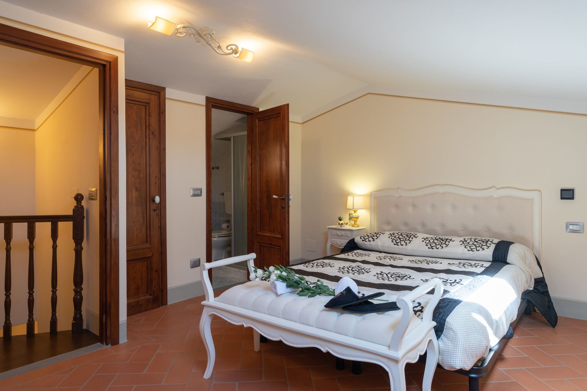 Upon arrival you will be greeted by the owner or manager where you’ll find a nice clean well-maintained property with views of the hills ideal for a splendid vacation in Tuscany. For your enjoyment you will find a private pool where you can unwind while enjoying a nice cold beverage after a busy day of visiting museums. Outside you will also find a playground, hot tub and barbecue grill. Sharing a meal with friends and family is a huge part of the Tuscan culture. Take advantage of the well-equipped kitchen to prepare meals using local produce while on your vacation. The kitchen includes coffee machine and toaster, as well as, plenty of tableware and cutlery for up to 26 people. Dine 'al fresco' like a real Tuscan, the fully furnished garden is the perfect setting to enjoy food, family and the nice Tuscan weather.