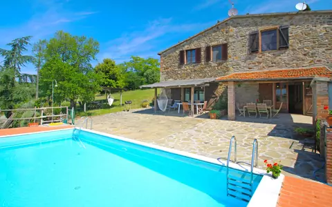 The outdoor spaces at "La Casetta" are among its most captivating features, offering a harmonious blend of leisure, nature, and authentic Tuscan living. The property boasts 2 lovely private terraces and gazebos equipped with hammocks, providing the perfect setting to unwind and soak in the surrounding landscape at any hour of the day. A shared pergola and terrace area, furnished with garden furniture, offer additional spaces for outdoor relaxation and al fresco dining. The barbecue facilities invite you to enjoy convivial meals in the open air, while a traditional oven for pizza and bread adds a genuinely authentic touch to your culinary experience. The superb shared swimming pool, located just a few metres from the house, is ideally positioned to allow parents to keep a watchful eye on their children while they play. The private garden and orchard extend across the estate, offering shaded corners, open lawns, and the gentle scent of fruit trees and wild herbs. A private chapel, still in active use, stands within the grounds and provides a unique and moving connection to the local cultural and spiritual heritage of the region.