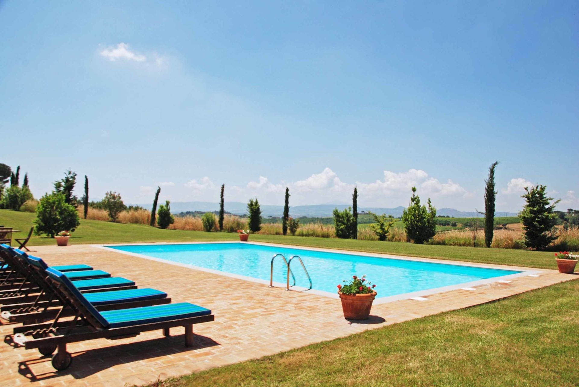 The accommodation consists of two terracotta-brick farmhouses, not interconnecting with each other, being the perfect setting for family reunions, or giving the possibility for a large group to holiday together yet retain their own privacy. The large swimming pool (14 x 7 m) is situated in a very sunny area of the flat lawned garden where there is also a changing room and a guest bathroom. There is a tennis court in synthetic surface. The British house manager is available for suggestions and assistance. On request, she can arrange cooking services, as well as Italian lessons, for her guests.