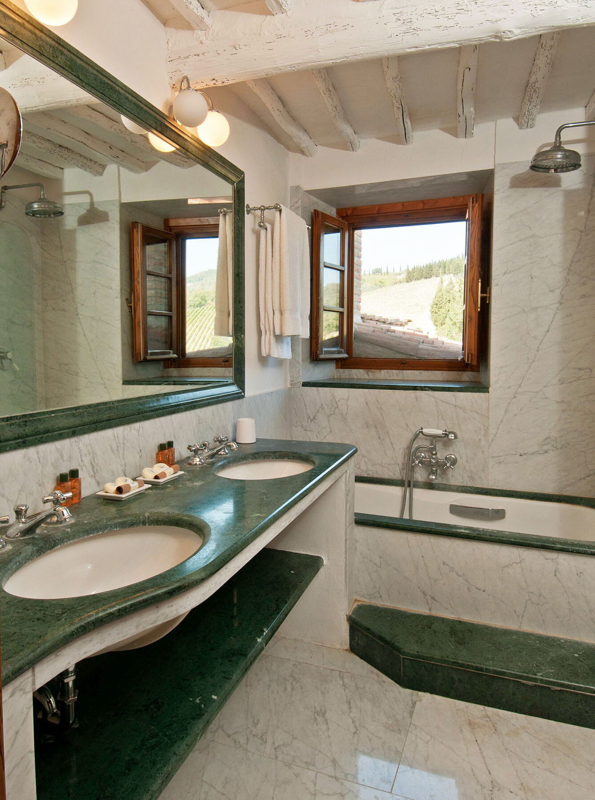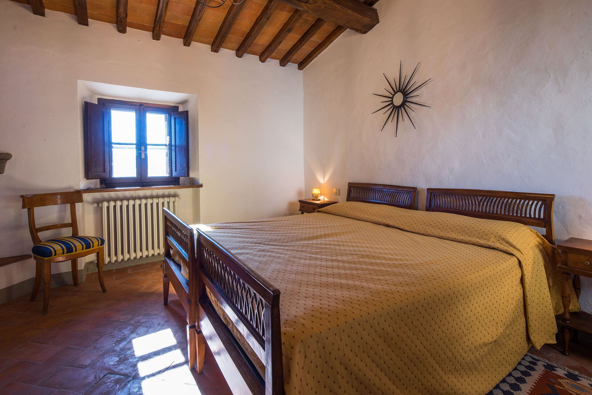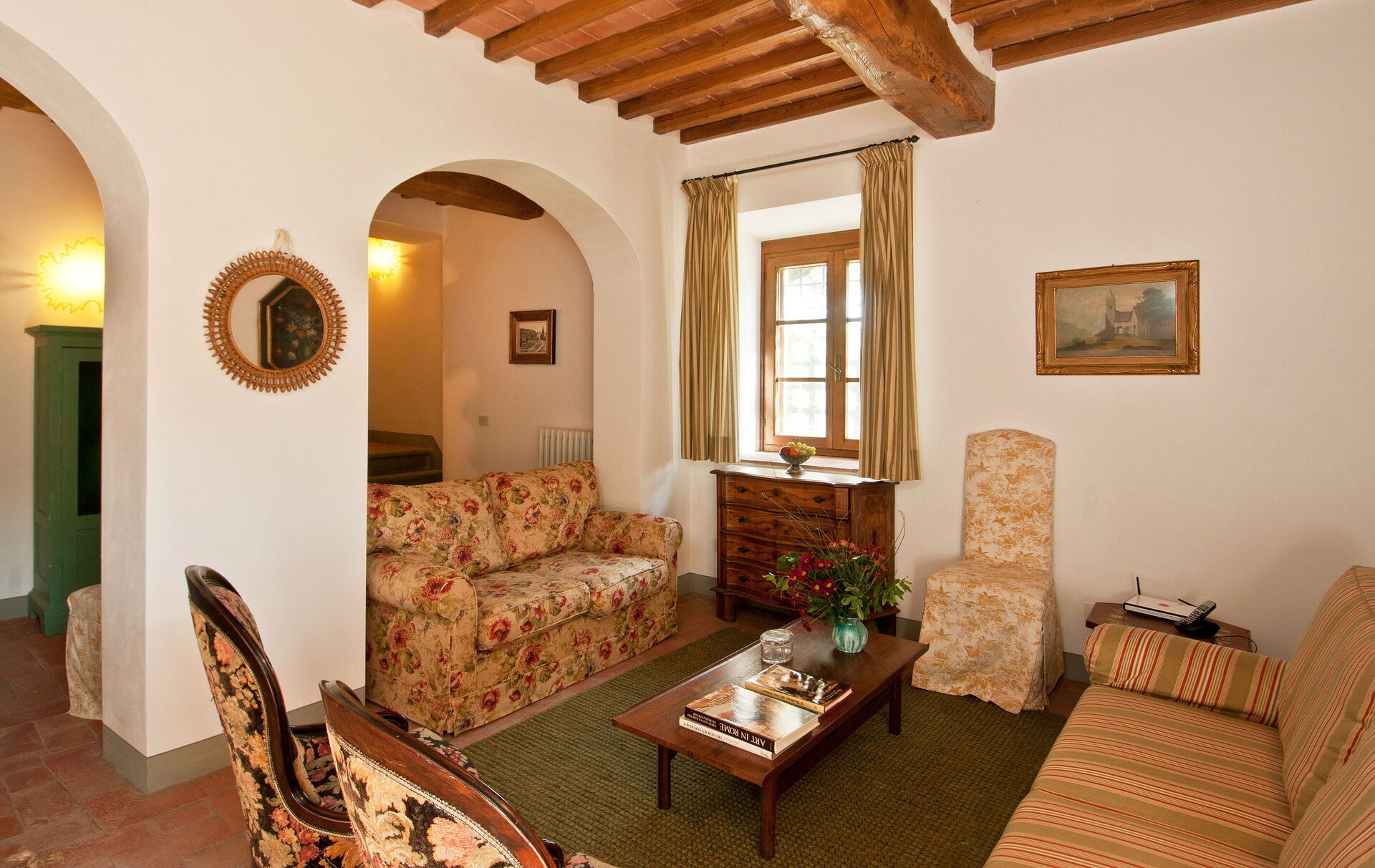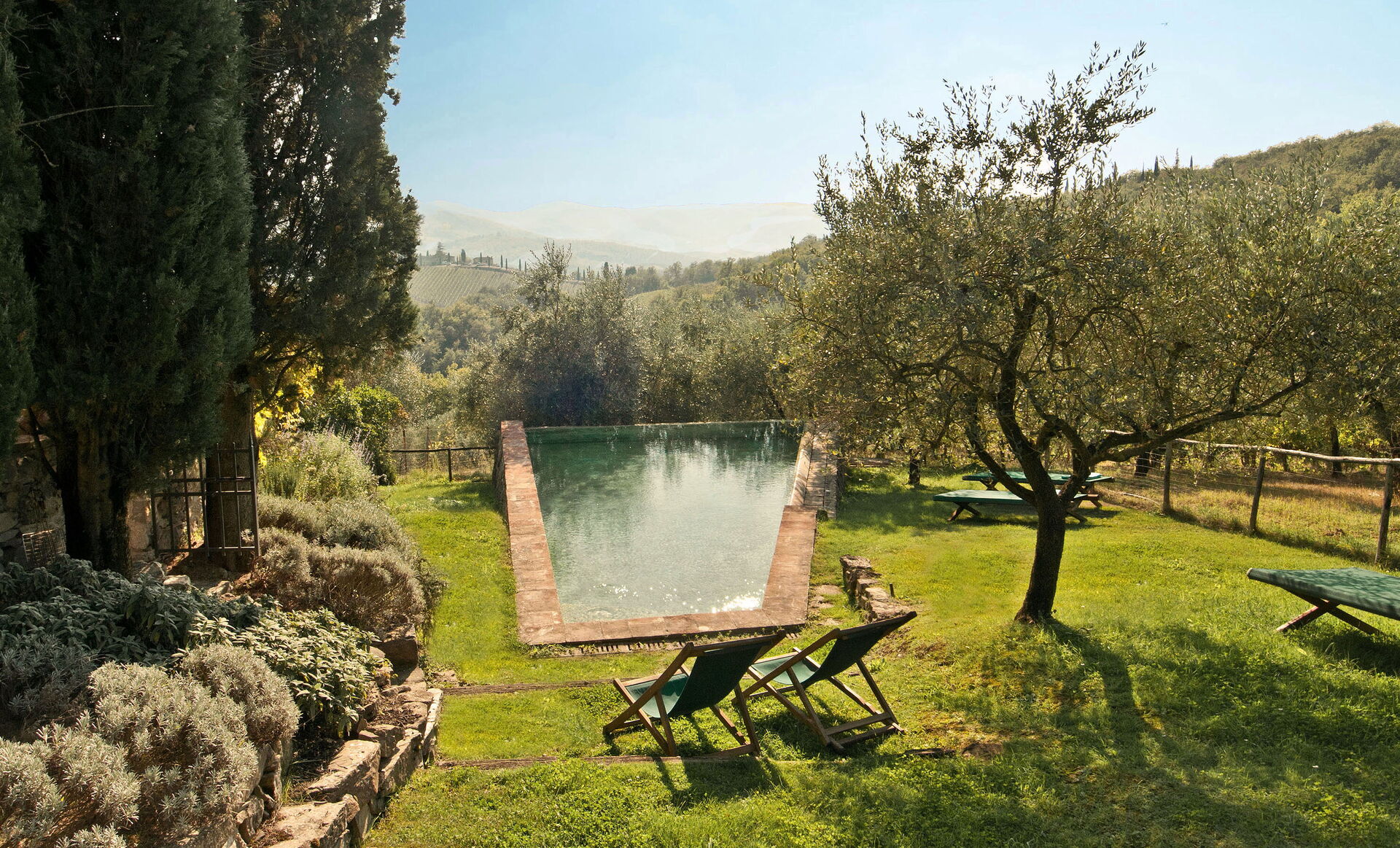 This beautiful farmhouse is located in a very quiet and secluded position on the Castello di Volpaia estate, where we have successfully been renting two other properties, La Pozza and Il Casetto for many years. Guests can enjoy incredible views from the covered terrace, which is furnished for outdoor eating and is also very practical for families as it overlooks the pool, allowing parents to relax while keeping an eye on the pool area. The fortified hamlet of Volpaia offers two nice restaurants, one of which owned by the estate. The English speaking estate staff can organize cooking lessons, visits to the wine cellars and will be glad to assist guests during their stay.