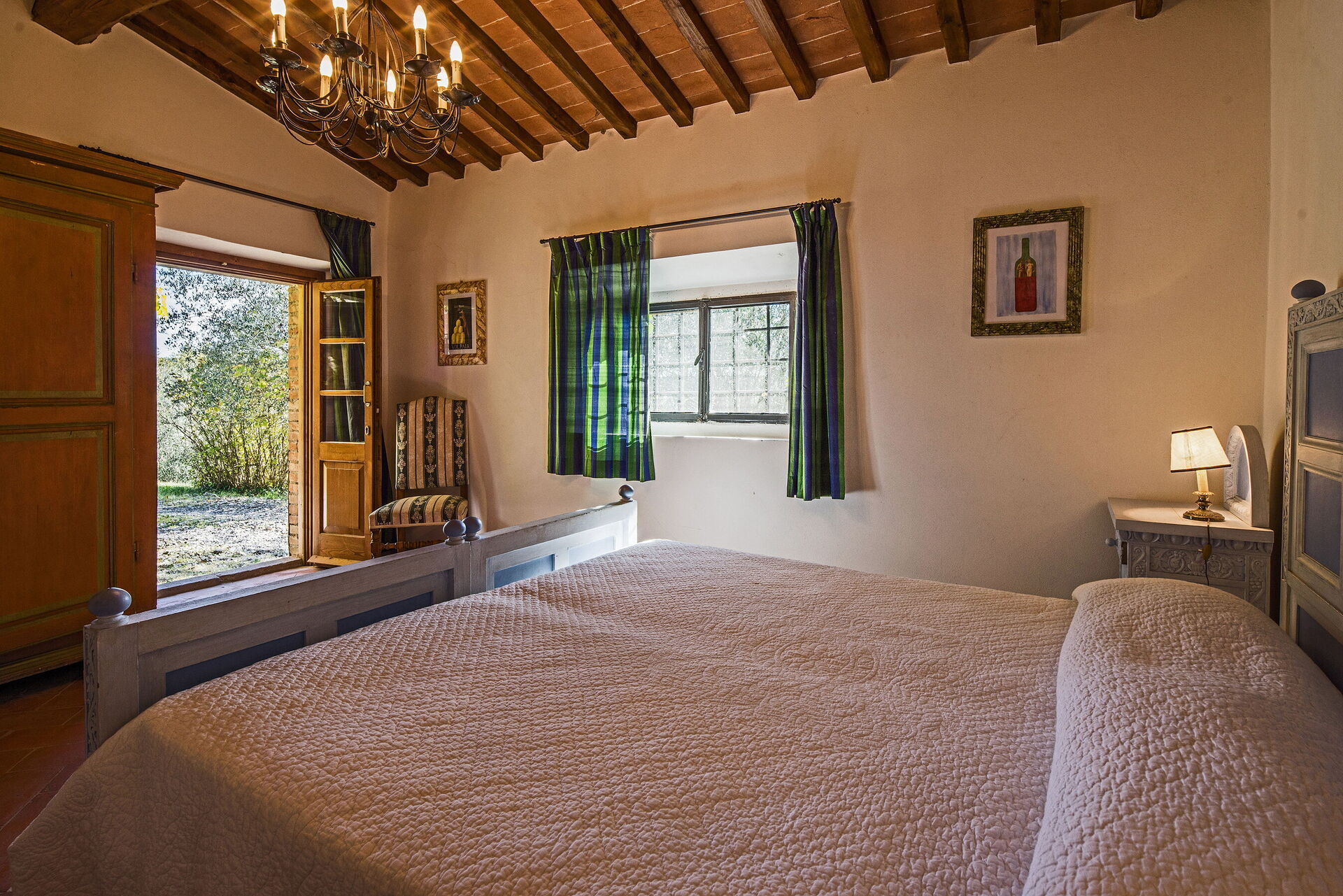 Bedroom 1: double bed, mosquito net, exit to the garden.