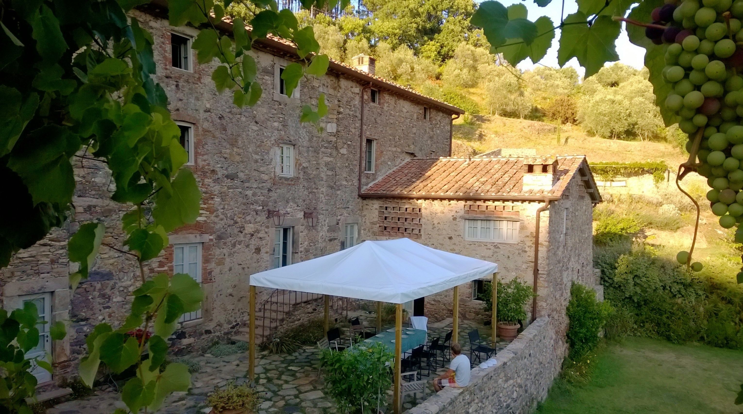 Chiodo is a beautiful farmhouse set high in the hills between Lucca and Pisa, with magnificent views on the valley below. It is located very close to the small village of Vorno. The very spacious and well equipped kitchen opens directly onto the large courtyard and garden overlooking the valley, ideal for eating outside or just relaxing and enjoying the peace and lovely views.