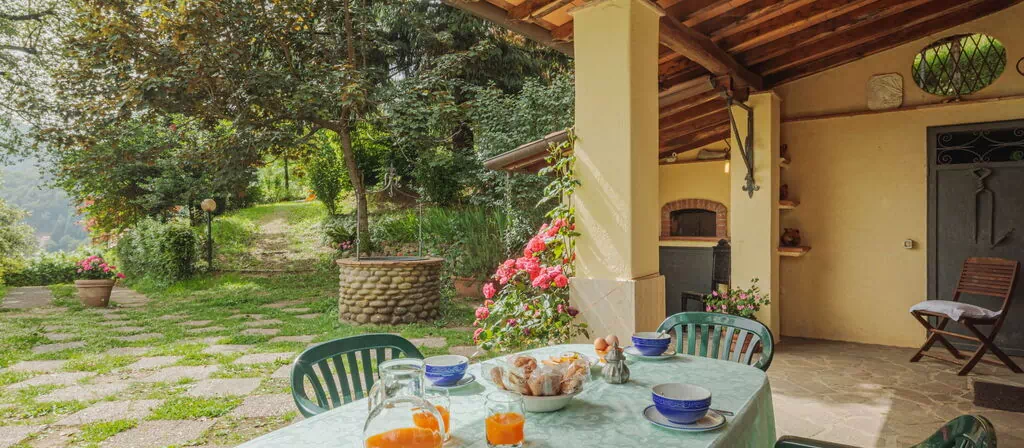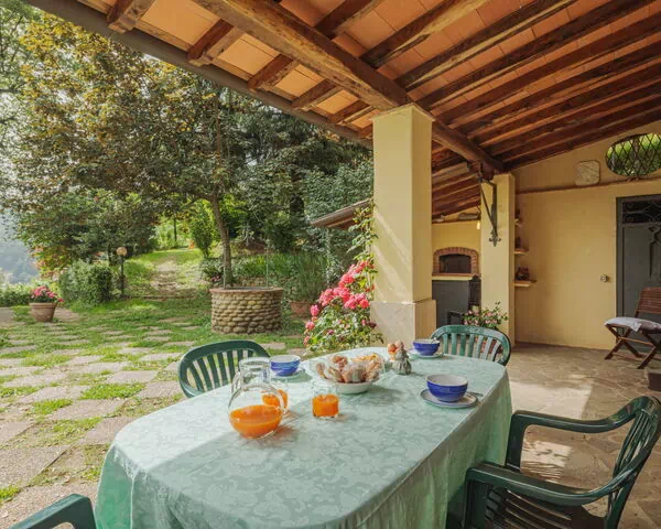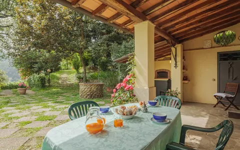 Perched amongst the trees at an impressive elevation of 650 meters above sea level, "La Quercia" is a charming country house nestled on a hillside slope in the heart of the Tuscan countryside, just 9 kilometers from the center of Camaiore, Italy. This vacation rental offers a truly serene escape, combining the tranquility of a natural setting with a thoughtful selection of modern comforts. The property is surrounded by a magnificent 5,000 square meter garden featuring natural meadows, mature trees, and lush green spaces, providing guests with an immersive countryside experience. Wireless internet wifi is available throughout the stay, ensuring you remain connected even in this peaceful rural retreat. The property benefits from ample parking space, conveniently accommodating vehicles upon arrival, and the expansive yard surrounding the house adds both privacy and a sense of open, natural freedom that is rarely found in more urban settings.