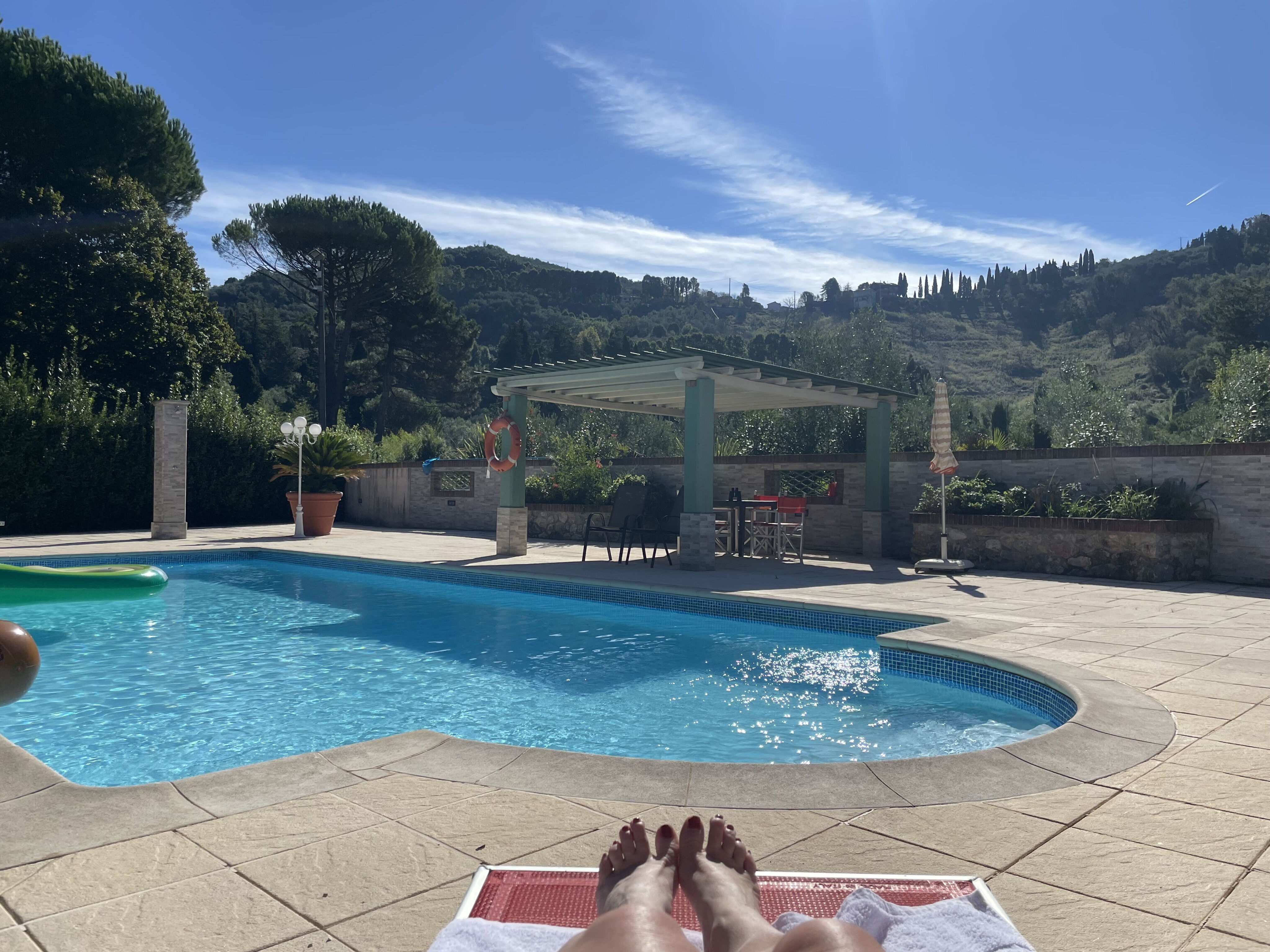 Nestled in the tranquil district of Pontemazzori, just 4 km from the centre of Camaiore, Italy, the beautiful single-family house "Costacce" offers an exceptional vacation rental experience for those seeking peace, privacy, and natural beauty. Surrounded by lush trees and set within the serene Tuscan countryside, this charming property provides a perfect retreat away from the demands of everyday life. Spread across an impressive 2,000 m2, the estate features a private garden enriched with a wildlife garden, open meadow, and mature trees, creating a truly immersive natural setting. A private swimming pool measuring 10 x 5 m invites you to relax and unwind during the warmer months, while the generous yard surrounding the property ensures ample space for outdoor enjoyment. Wireless internet connection is available throughout the property, keeping you connected whenever needed, and convenient on-site parking ensures a seamless and comfortable stay from the moment of your arrival.