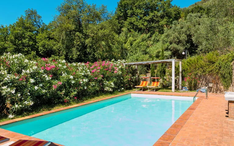 The property is conveniently located just 4 kilometers from the center of Montecatini Terme, 30 kilometers from Lucca, and 50 kilometers from Florence. It is situated in a secluded and sunny position on a slope, just 55 kilometers away from the sea and the sandy beach "Lido di Camaiore." Nearby attractions include an 18-hole golf course just 10 kilometers away from the vacation rental.