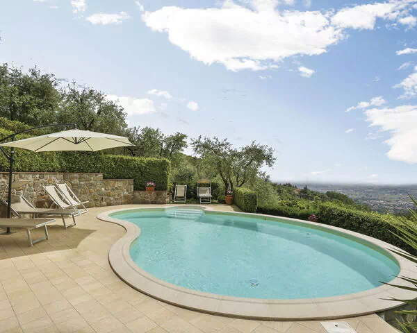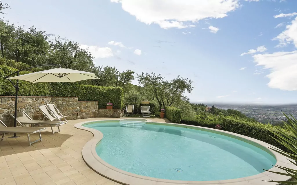 Nestled in the charming hamlet of Montaccolle, in the municipality of Massa E Cozzile, Italy, "Villa I Cipressi" is an elegant detached single-family home perched at 400 metres above sea level. This exceptional holiday rental occupies a privileged hilltop position within a fully fenced property spanning over 4,500 m2, offering breathtaking panoramic views of the surrounding Tuscan landscape. The villa combines privacy, tranquility, and modern comfort in a setting that feels both secluded and conveniently connected. Guests benefit from reliable internet and WiFi connectivity throughout their stay, ensuring seamless communication without compromising the peaceful atmosphere. The generously sized yard features a beautifully maintained terraced garden lawn that enhances the natural beauty of the surroundings. A kidney-shaped swimming pool of 30 m2 adds a refreshing focal point to the outdoor experience, while on-site parking provides effortless convenience for those arriving by car.