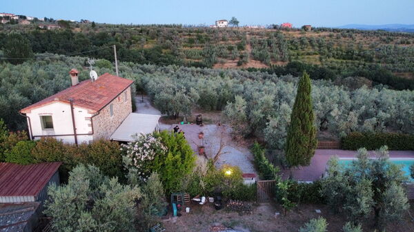 The property boasts a beautiful swimming pool (8 x 5 m, depth 120 cm, seasonal availability: 01.May. - 05.Oct.), an outdoor shower, a terrace, garden furniture, and a barbecue area, perfect for enjoying the pleasant Tuscan weather. The fenced meadow and olive groves surrounding the house add to the serene ambiance of the place.