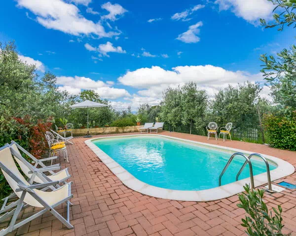 Rustico la Casina is a charming single-family vacation rental nestled among the olive trees on the rolling hills of the Florentine countryside, situated between Vinci and Florence in Italy. This beautifully appointed property offers complete privacy and relaxation in a serene rural setting, making it an exceptional retreat for families or groups of friends seeking an authentic Tuscan experience. The house sits on 1,000 m2 of fully fenced land, providing a secure and private environment throughout your stay. A stunning swimming pool measuring 8 x 5 m with a depth of 120 cm is available for your enjoyment from 01 May to 05 October, inviting you to unwind in the warm Italian sun. The surrounding yard is a lush, well-maintained meadow that enhances the natural beauty of the landscape and offers ample space for outdoor leisure. Reliable internet wifi is available throughout the property, ensuring you remain connected whenever needed. Parking is conveniently available on the premises, offering ease and peace of mind upon your arrival.