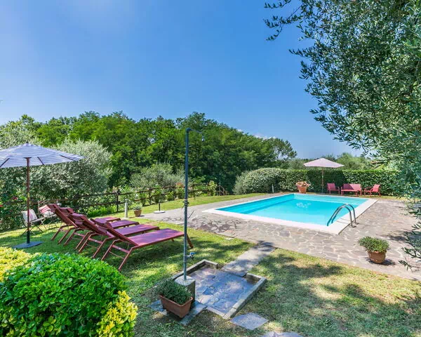 Nestled amidst rolling fields and vineyards in the picturesque countryside of Santa Maria A Monte, Italy, the charming rustic villa "Podere Cerbaie" offers an exceptional holiday rental experience for those seeking tranquillity and authentic rural character. Positioned in a secluded, elevated setting on a gentle slope, this idyllic property is enveloped by a private 1,500 square meter fenced garden featuring lush lawns and mature trees, creating a sense of complete seclusion and natural beauty. The villa is equipped with a stunning swimming pool measuring 8 x 4 metres, available seasonally from 08 May to 16 October, inviting guests to cool off and unwind in a serene outdoor setting. The expansive yard surrounding the property provides ample space for relaxation and outdoor enjoyment, while on-site parking is conveniently accessible directly on the premises. Guests can remain effortlessly connected throughout their stay thanks to internet and WiFi access, ensuring that modern comforts complement the peaceful rural atmosphere of "Podere Cerbaie."