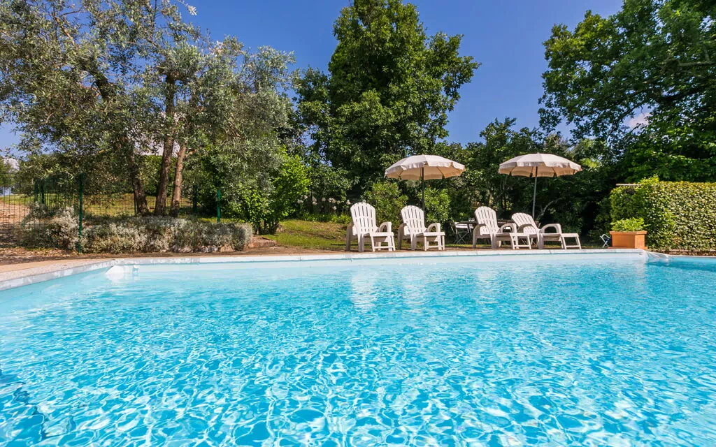 The outdoor spaces at "Il Laghetto" are a true highlight of the property, inviting guests to spend long, unhurried hours in the open air. The natural garden and surrounding meadow create a lush and verdant setting that feels both private and immersive, with mature trees providing shade and a sense of seclusion. The above-ground swimming pool, measuring 8 x 4 meters, is available for use from May 15th to October 1st, offering a welcome respite on warm summer days. For guests who enjoy recreational activities, a table tennis table is available on the property, providing a fun and casual option for entertainment throughout the day.