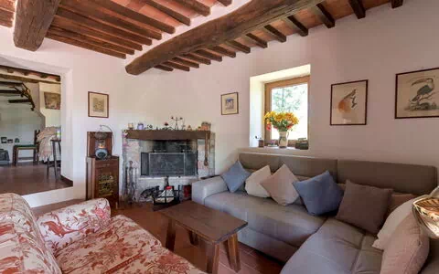 The house features a holiday standard, rustic furnishing style, complemented by some antique furnishings and cotto flooring. It is well-equipped with amenities such as a TV, Wi-Fi internet access (included), a washing machine, a safe, and gas central heating. Additionally, the house can accommodate up to 6 people, making it suitable for a group vacation.