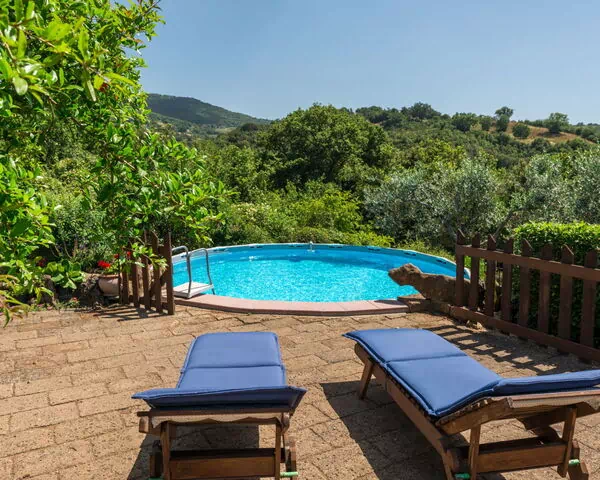 Nestled in the unspoiled countryside of Scansano, Italy, "Bardi I" is a charming and rustic holiday rental that offers an exceptional retreat for those seeking tranquility and a deep connection with nature. Positioned below the small village of Polveraia, just 1 km from its center and 14 km from the heart of Scansano, this secluded property sits within a private grounds of 700 m2, beautifully landscaped with a wildlife garden and mature trees that create a serene and immersive natural setting. The yard surrounding the property provides ample space to relax, explore, and enjoy the peaceful rural atmosphere. Guests also benefit from the convenience of roofed parking available directly at the house, ensuring a comfortable and secure stay from arrival to departure. An above-ground swimming pool with a diameter of 5 m adds a refreshing recreational dimension to the property, inviting guests to unwind during the warmer months.