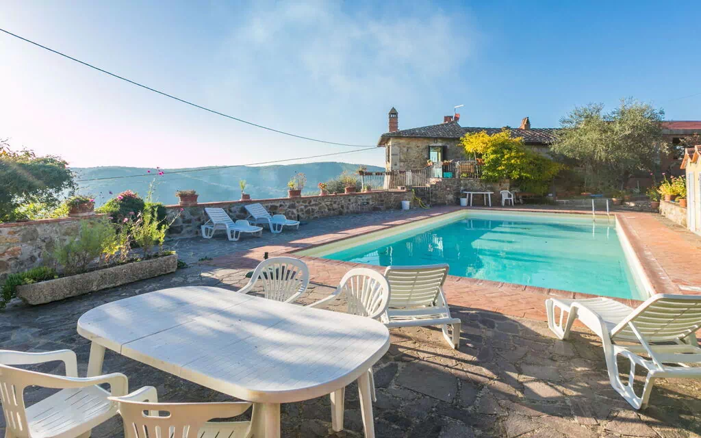 Montechioccioli is a true countryside gem with a terraced garden spanning 1,000 m2, adorned with a variety of plants and trees. It offers a serene setting for guests to relax and take in the stunning views of the Tuscan countryside. The property boasts a seasonal swimming pool, measuring 12 x 6 m with a depth of 170 cm, available from May 2nd to October 3rd. The pool area features a shower/WC and a terrace with a barbecue, perfect for alfresco dining and enjoying the warm Italian evenings.
