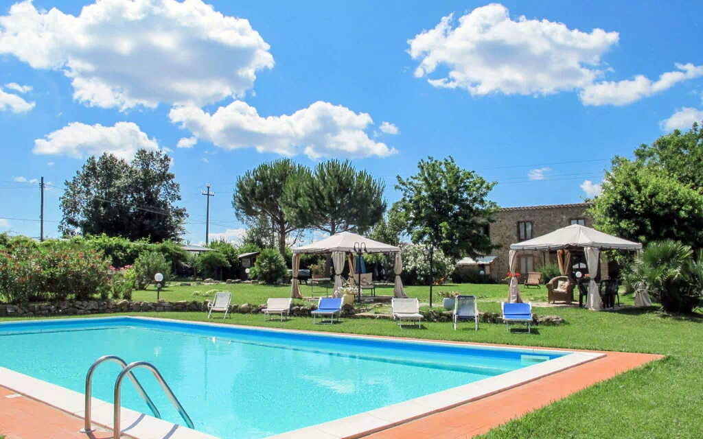 This small and cozy vacation rental, consisting of two storeys and eight apartments, is surrounded by trees and fields in Massa Marittima, Italy. It offers a fenced garden with a lawn, plants, and a seasonal swimming pool (from 30 May to 30 September), as well as an outdoor shower, patio, pergola, garden furniture, barbecue, and children's playground. You'll also have access to a reception area, Internet WiFi, table football, washing machine (for shared use, extra), and bicycle rentals.