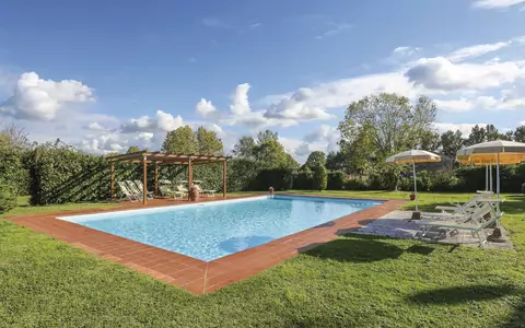 Nestled in the heart of Tuscany, Podere Elga is a charming country house vacation rental located in Capannori, Italy, offering an idyllic retreat surrounded by the rolling beauty of the Tuscan countryside. This property provides the perfect escape for those seeking tranquility and comfort in equal measure, combining the serenity of rural living with a thoughtful selection of modern amenities. The estate is set within a generous 2,800 m2 garden, lush with a variety of plants and enclosed by fencing that ensures both privacy and security for all guests. A large swimming pool measuring 14 x 8 m invites you to relax and unwind during the warmer months, while WiFi and internet connectivity keep you effortlessly connected throughout your stay. Parking is available directly on the premises, ensuring a convenient and stress-free arrival. Please be aware that the owner of Podere Elga resides on the same property, and an additional house on the complex is also available for rent.