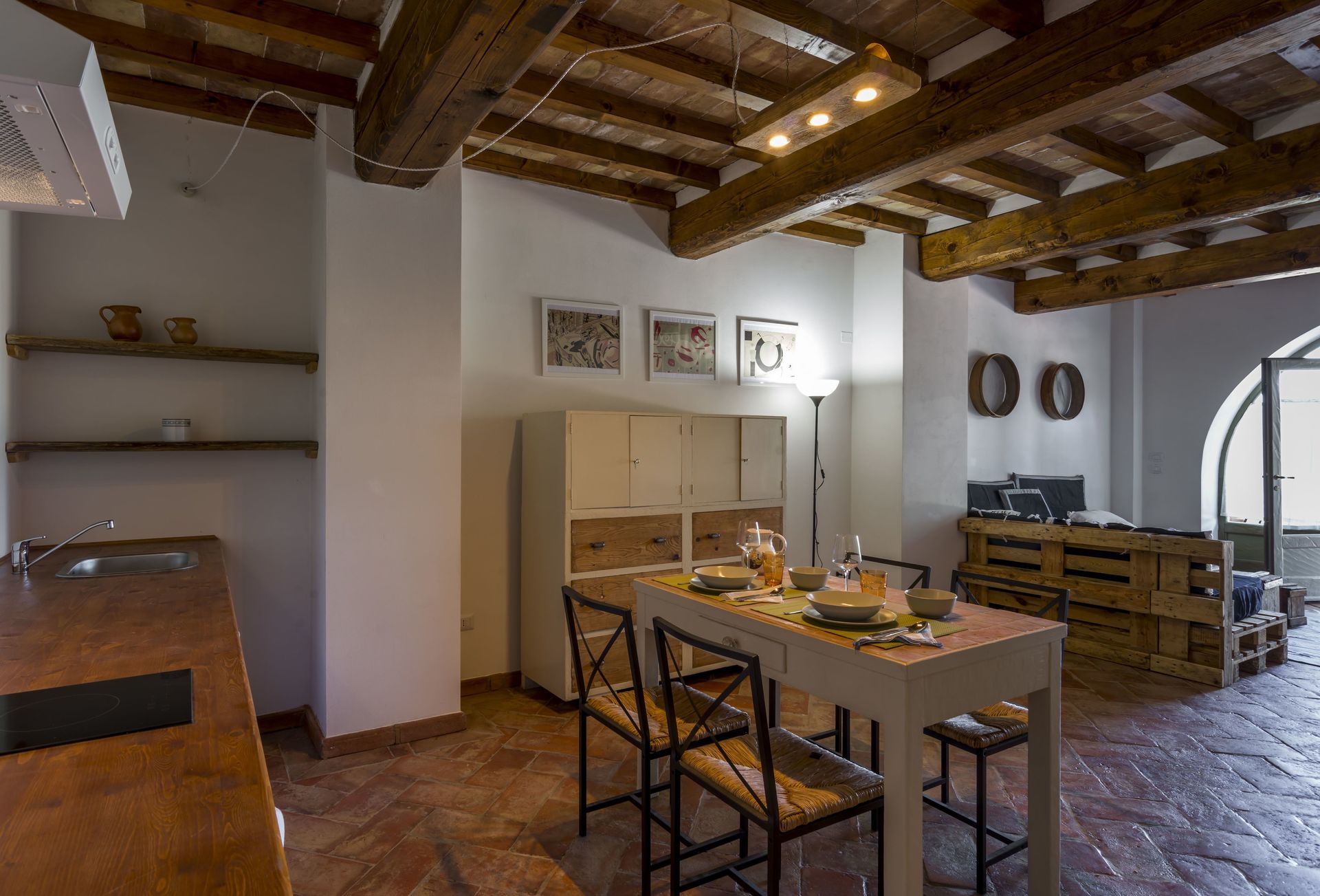 Sharing a meal with friends and family is a huge part of the Tuscan culture. Take advantage of the well-equipped kitchen to prepare meals using local produce while on your holiday. The kitchen includes coffee machine, microwave, stove and refrigerator, as well as, plenty of tableware and cutlery for up to four people.