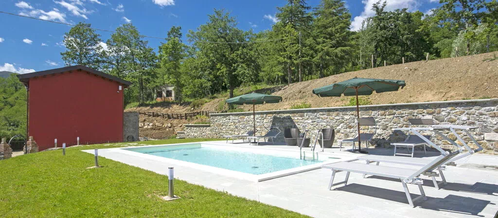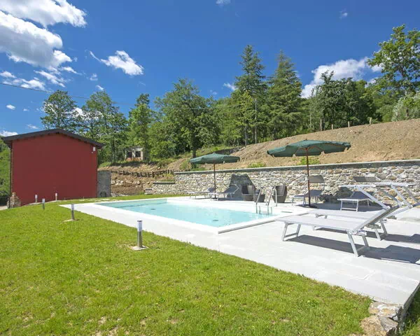 The outdoor spaces of "Gru Coronata" are a true highlight of the property, inviting you to make the most of the stunning natural surroundings. The swimming pool, measuring 8 x 4 metres with a depth of 120 cm, is available seasonally from 15 May to 30 September and provides a refreshing escape during the warmer months. An outdoor shower is conveniently located nearby, adding a practical and pleasant touch to the poolside experience. The garden is thoughtfully furnished with outdoor furniture, creating comfortable spaces where you can relax, dine al fresco, or simply enjoy the peaceful countryside atmosphere. The vast shared grounds of 140 hectares encompass nature trails where you are welcome to explore and encounter the typical fauna and flora of the area, making every outdoor moment a genuine connection with the natural landscape.
