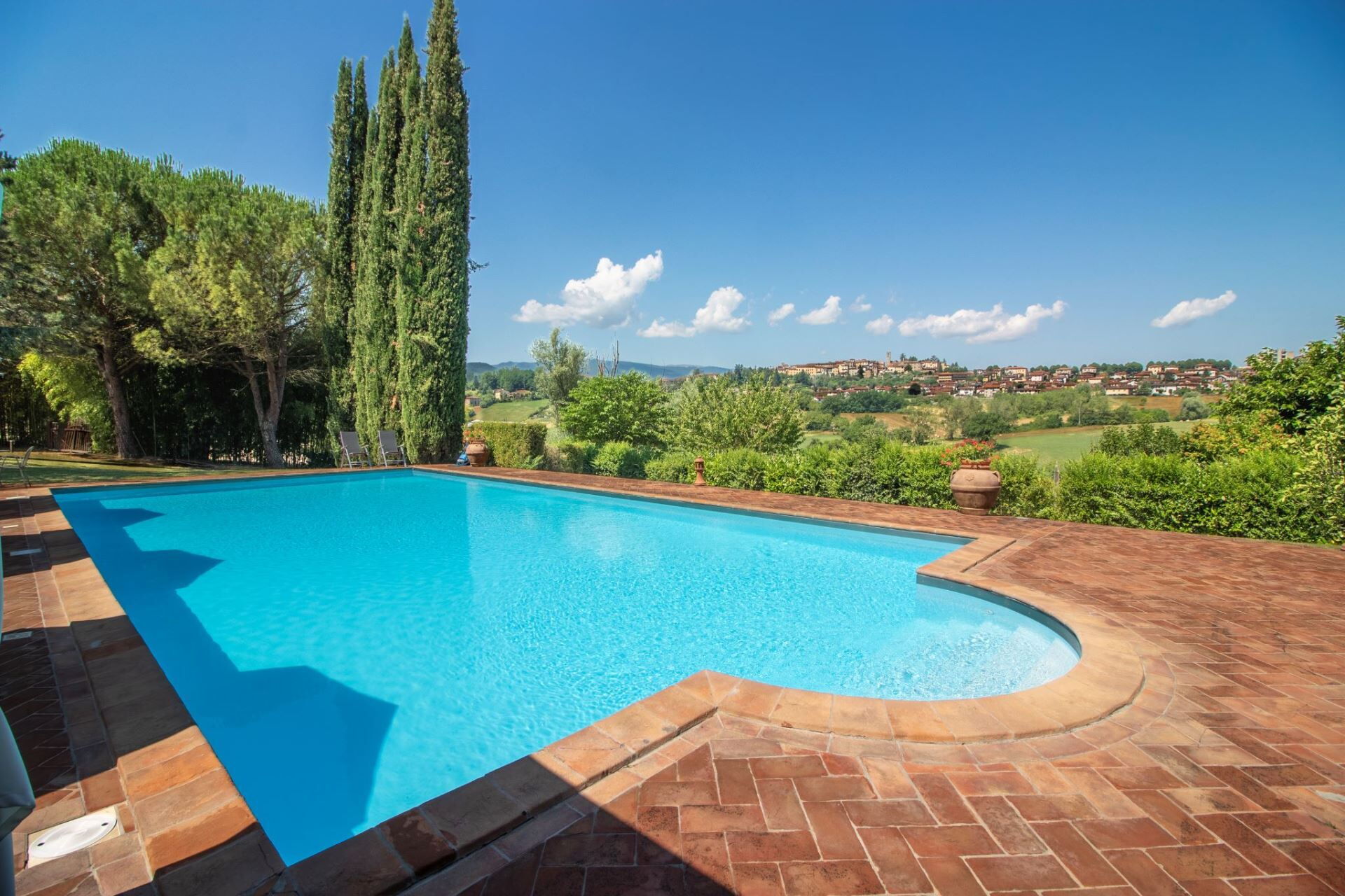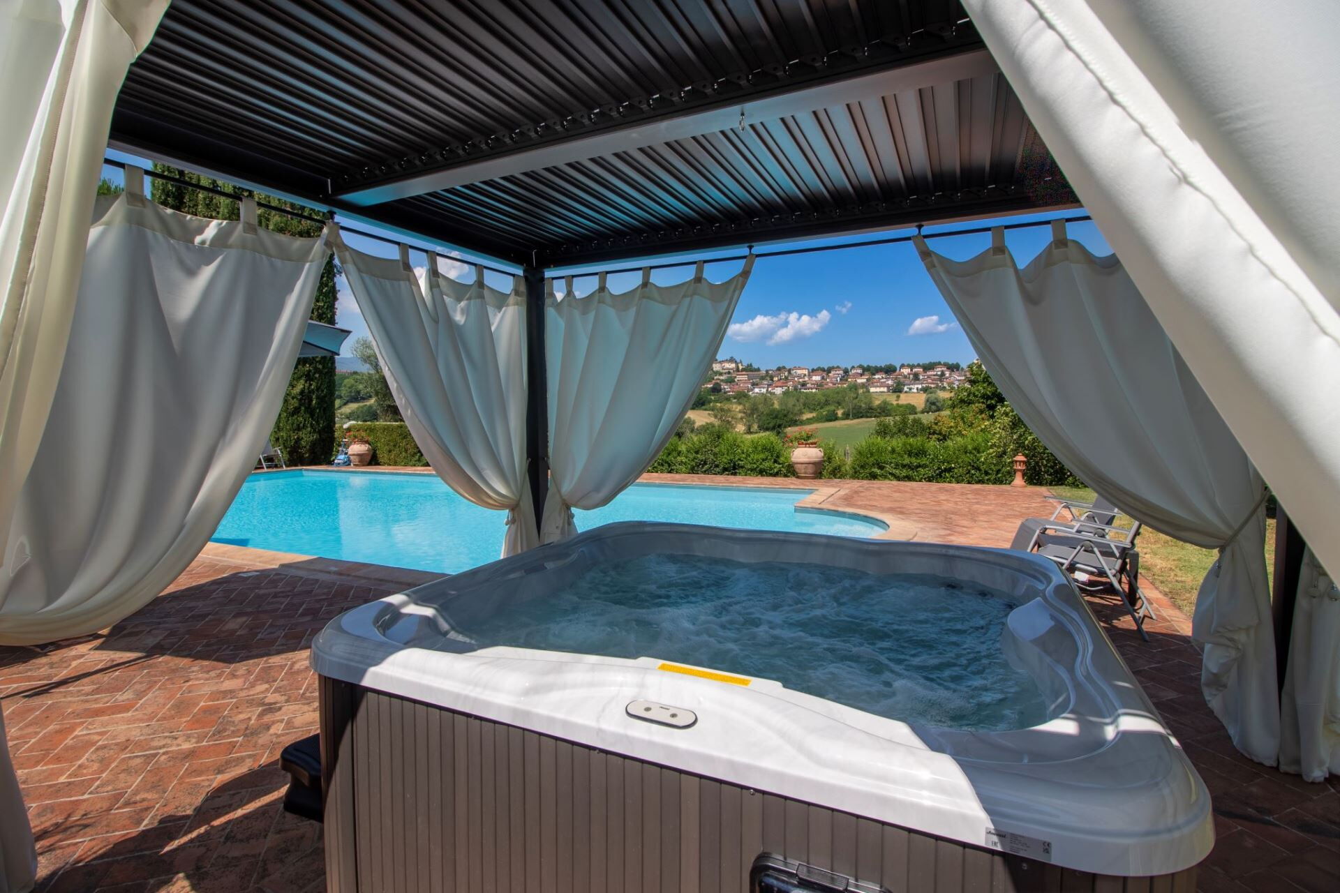 The panoramic swimming pool ( size mt 7x14 - depth mt 1,20-1,60 - open from 01st May to 30th September) the beautiful equipped solarium and 6-seater Jacuzzi offer a view of the ancient village of Bibbiena, perched on the top of the hill. Covered parking and fully fenced property.