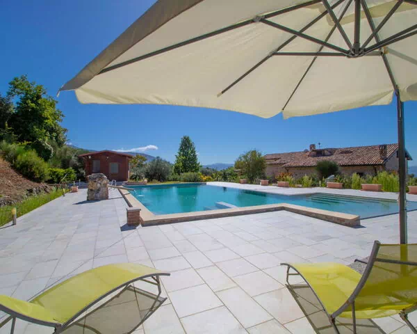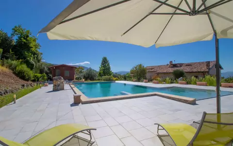 The outdoor spaces of villa "La Danza" are thoughtfully designed to make the most of the property's stunning natural surroundings. The private park of 2 hectares, fully enclosed by fencing, provides a safe and expansive environment in which to unwind and explore. The swimming pool, measuring 14 x 7 metres with a depth of 140 to 250 cm, is accessible via an internal staircase and is available for use from 1 May through 30 September. Adjacent to the pool, a wooden annex houses a shower and WC, and also features an external loggia as well as a room that can be used as a playroom for children, making it a particularly versatile and family-friendly outdoor facility. A dedicated shower and WC are also available directly within the pool area. The garden is furnished with outdoor furniture, providing comfortable spaces to relax in the open air, and a barbecue is on hand for al fresco dining and leisurely evenings outdoors.