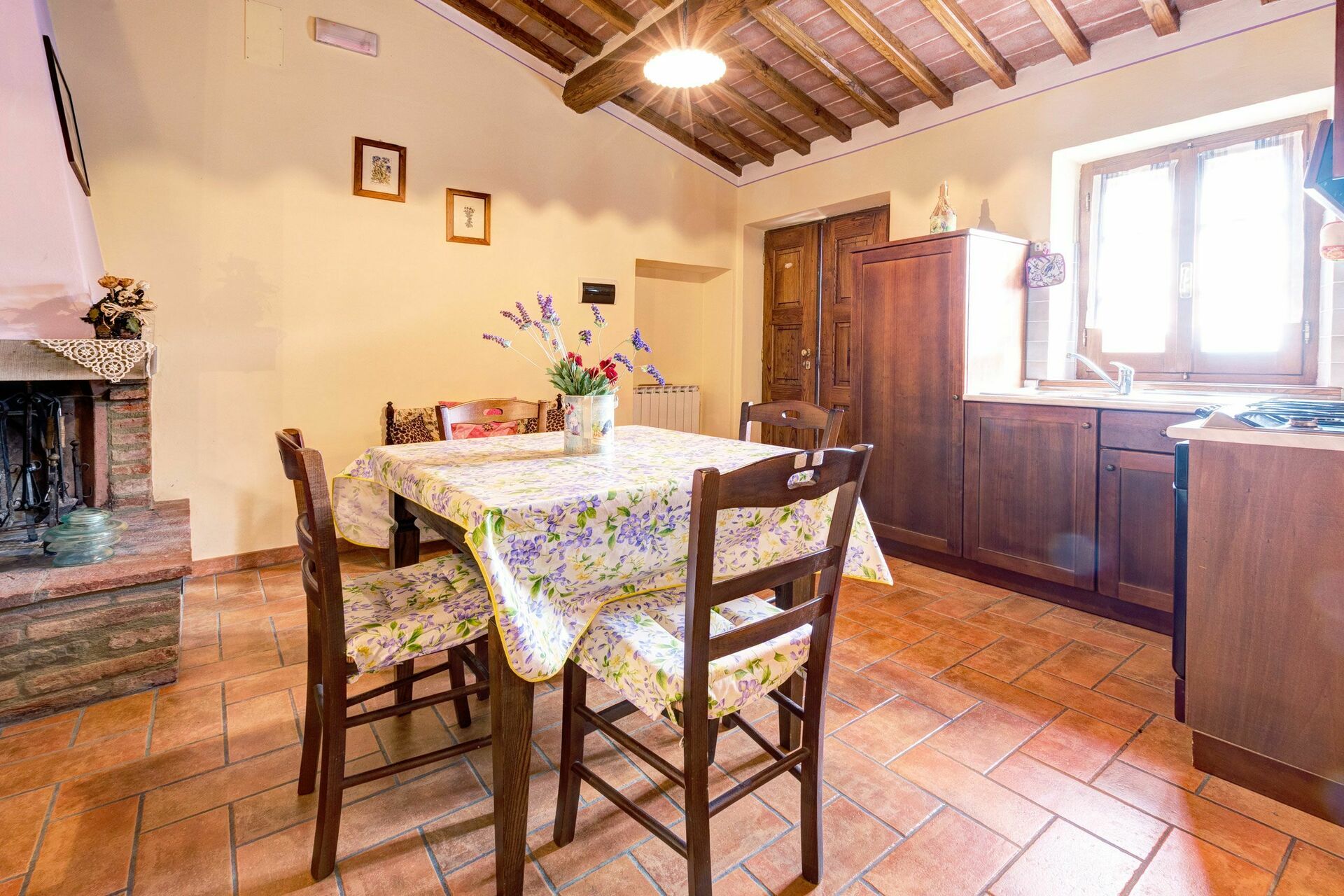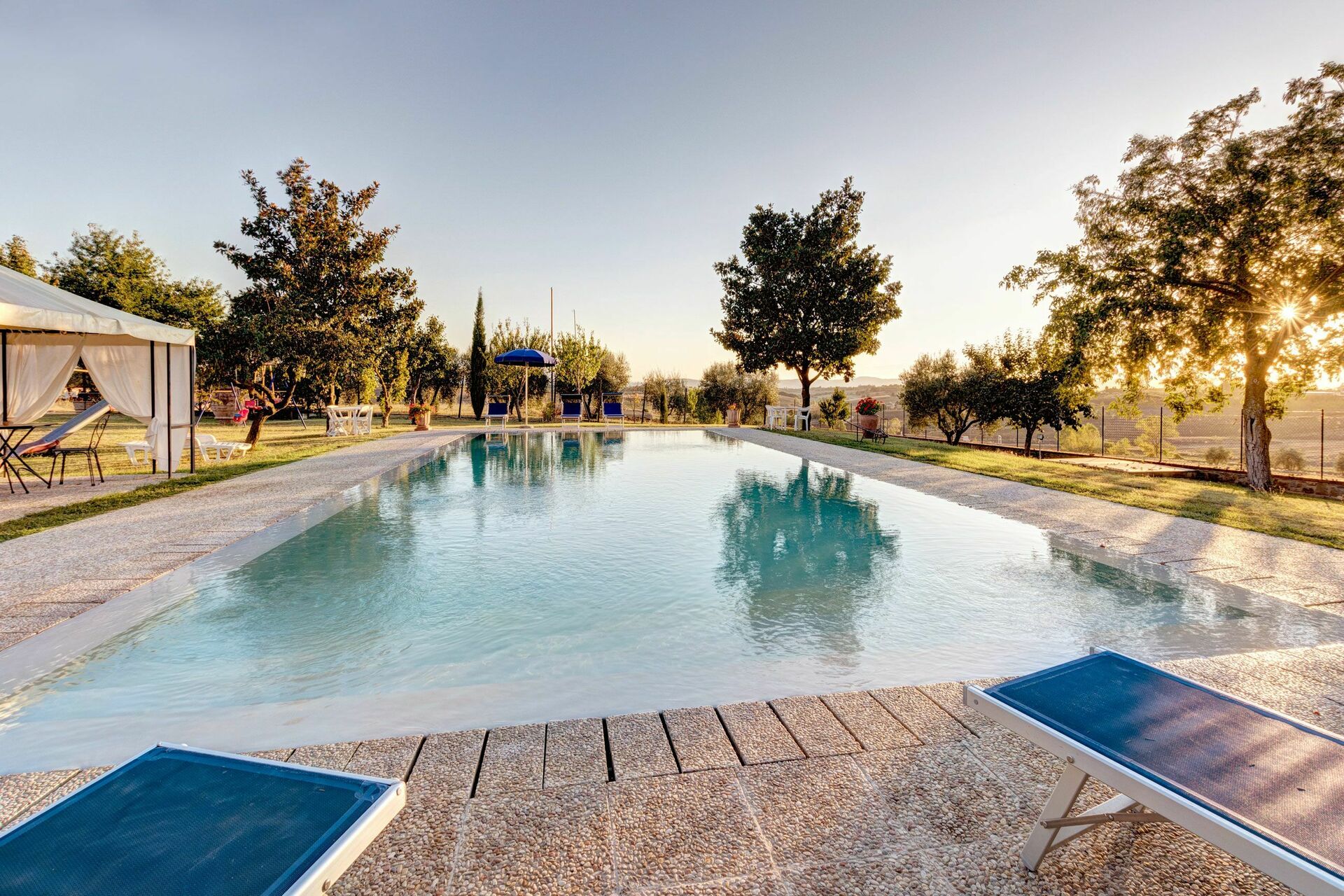 Upon arrival you will be welcomed by the owner or manager where you’ll find a lovely clean well-maintained property with views of the hills ideal for a peaceful holiday in Tuscany. Regardless of how you spend your days - shopping, sightseeing, visiting museums or just driving in the countryside, when you arrive home you can unwind with your family and friends at the pool for a perfect ending to another day in Tuscany. Outdoors you will also find a playground and barbecue grill. If you enjoy cooking for family and friends there is a well-equipped kitchen including coffee machine, microwave, toaster, stove and refrigerator, as well as, plenty of tableware and cutlery for up to ten people. If you prefer to dine 'al fresco', there is a fully furnished garden where you can enjoy the weather while dining outdoors.