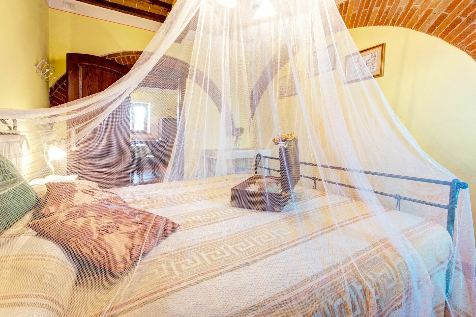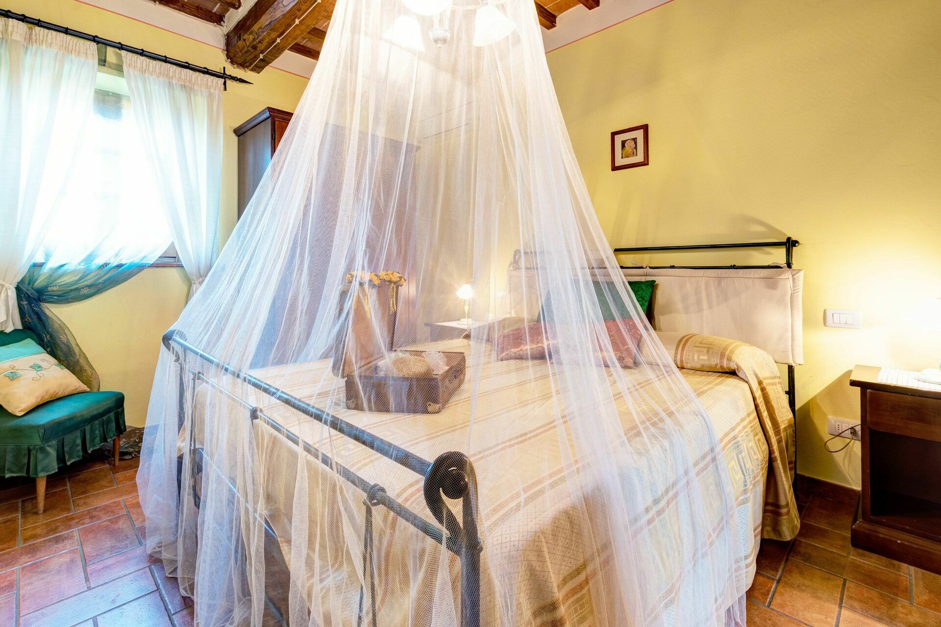 Bedroom: double bed, WIFI internet, air conditioning, mosquito net, television, armchair, exit to the garden.