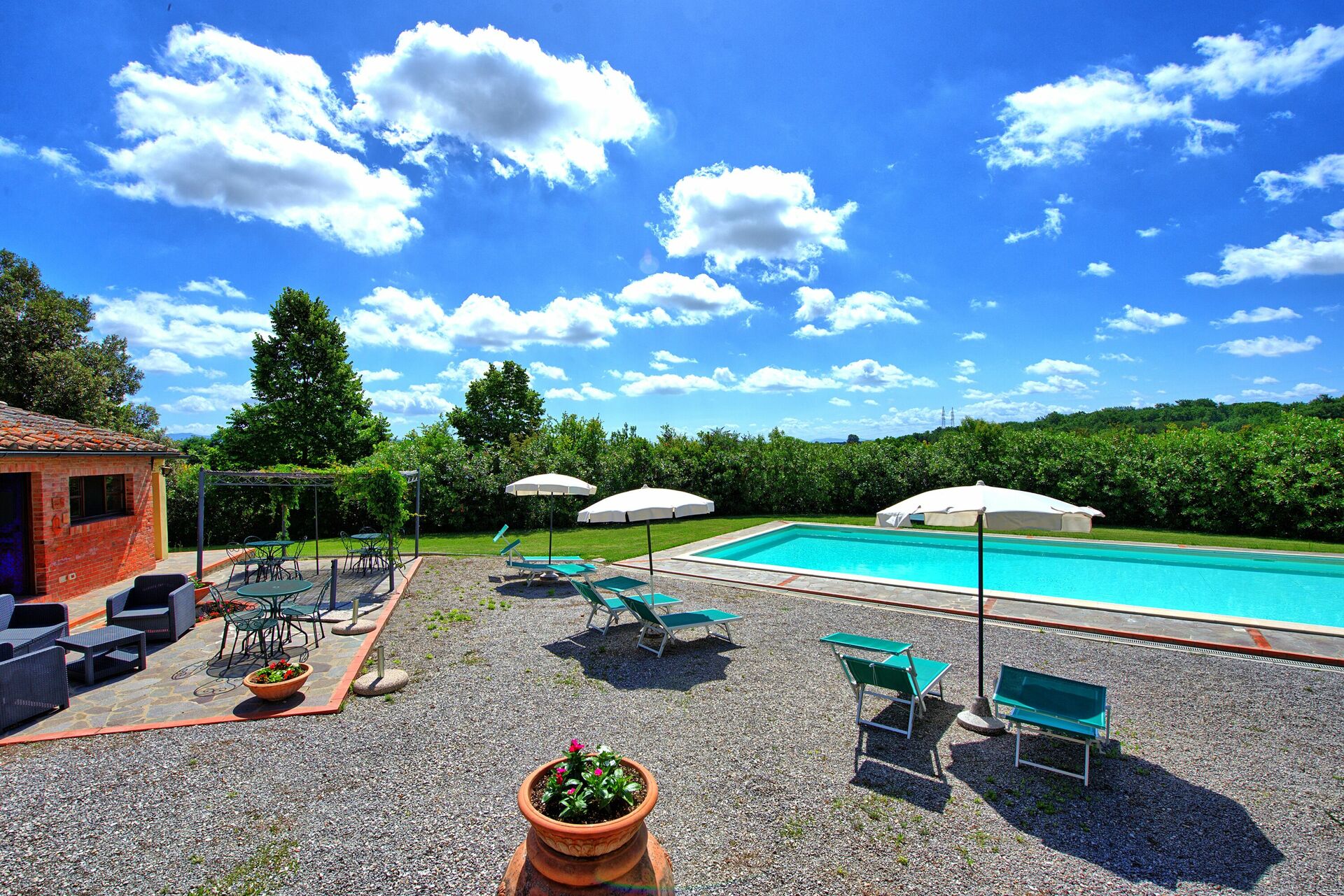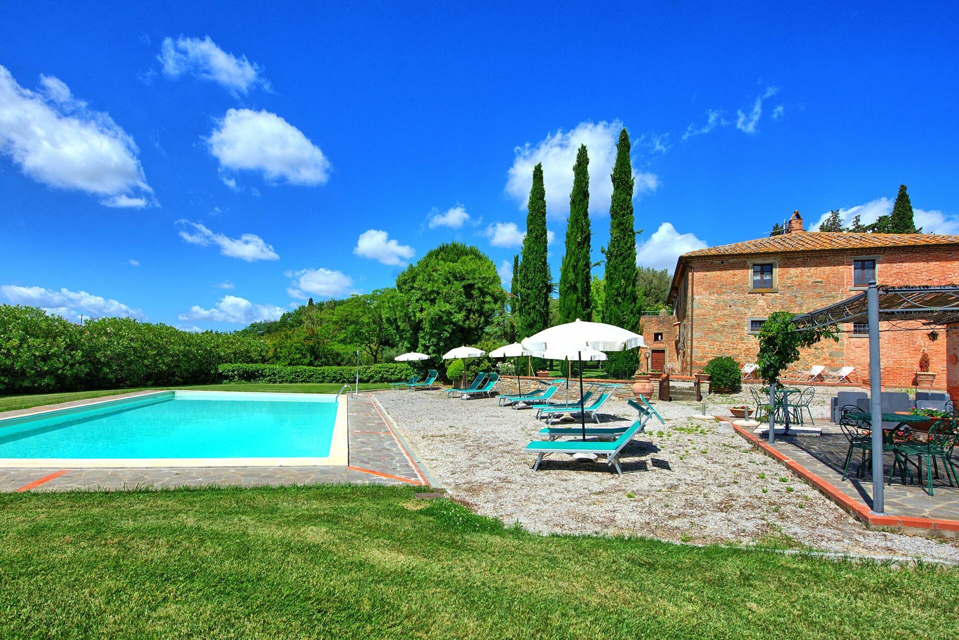First floor: living room (satellite TV) with double sofa bed, fireplace and dining area with kitchen area (fridge, microwave), double bedroom (air conditioning), bedroom with two single beds (air conditioning), bathroom with shower.